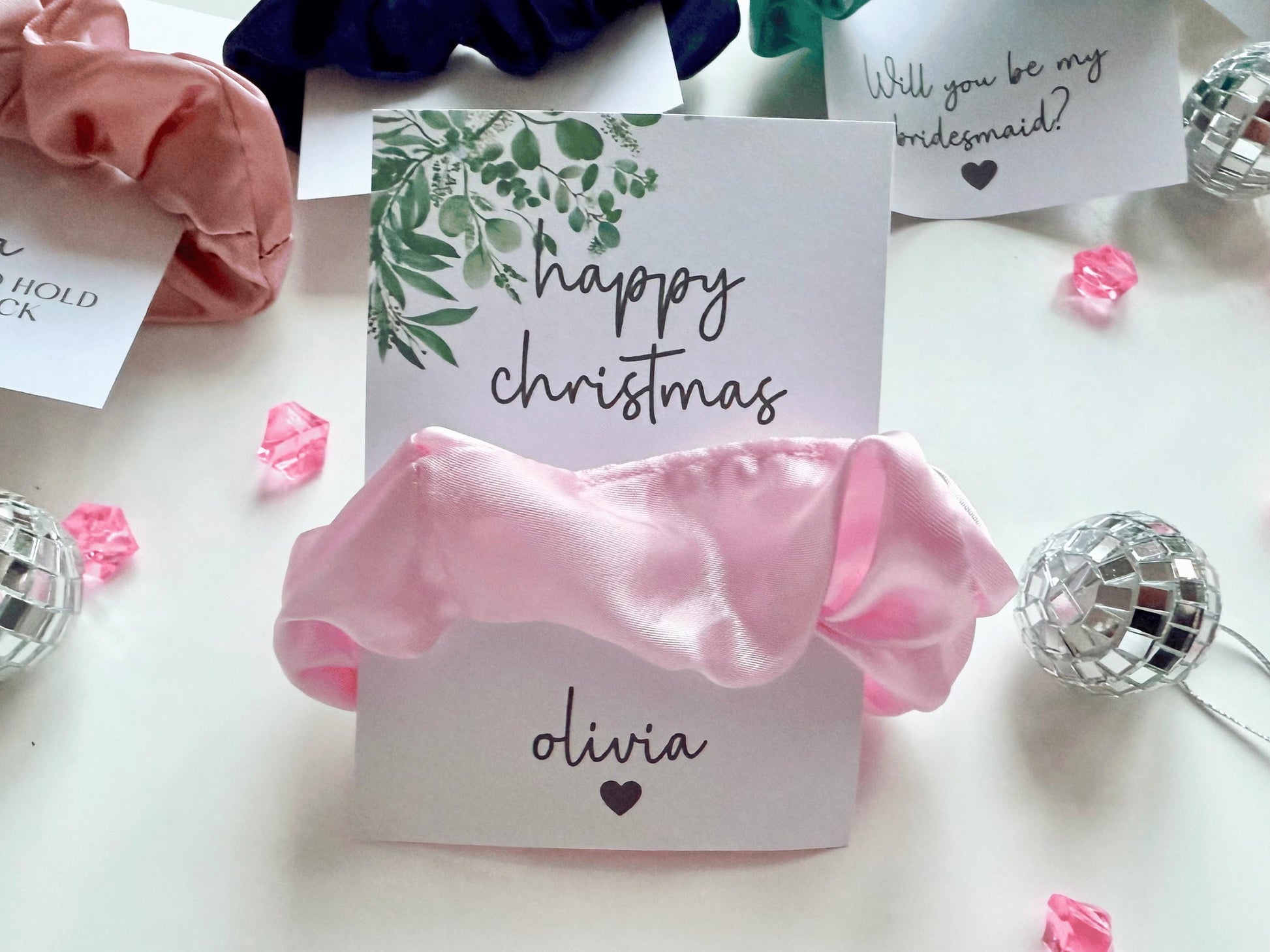 Personalised Happy Christmas Scrunchie/ Merry Christmas Stocking Filler/ Seasons Greetings Gift for Her Hair Accessories/Xmas Hamper Favours
