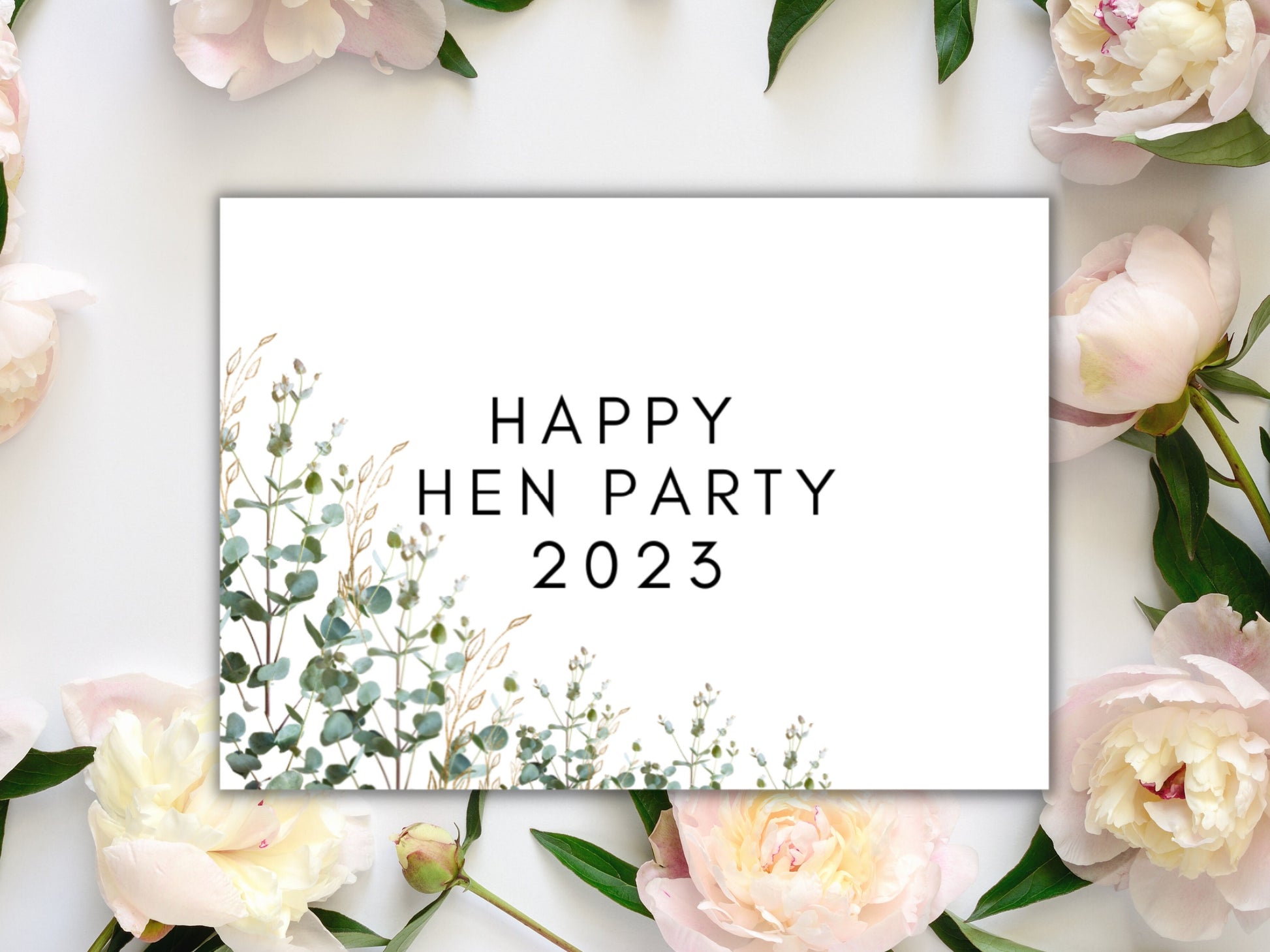 Personalised Happy Hen Party Mini Prosecco Bottle Label/ Hen Party/ Bride Squad Decor/ Floral Eucalyptus Bridal Shower Wine/ Champagne/ A11