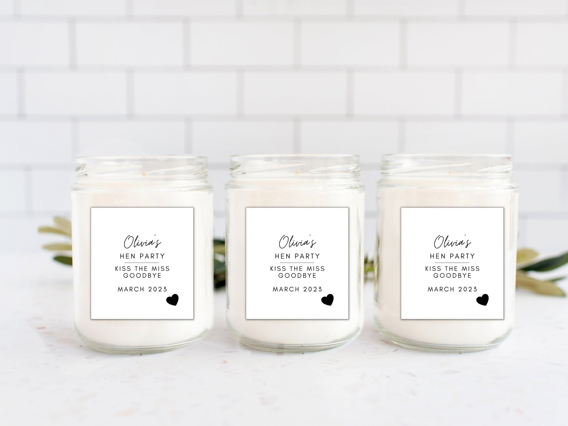 Personalised Hen Party Labels/ Kiss the Miss Goodbye Labels/ Proposal Box Label/ Hen Do/ Bachelorette/ Bridal Shower Candle/ Gift Bag Label.