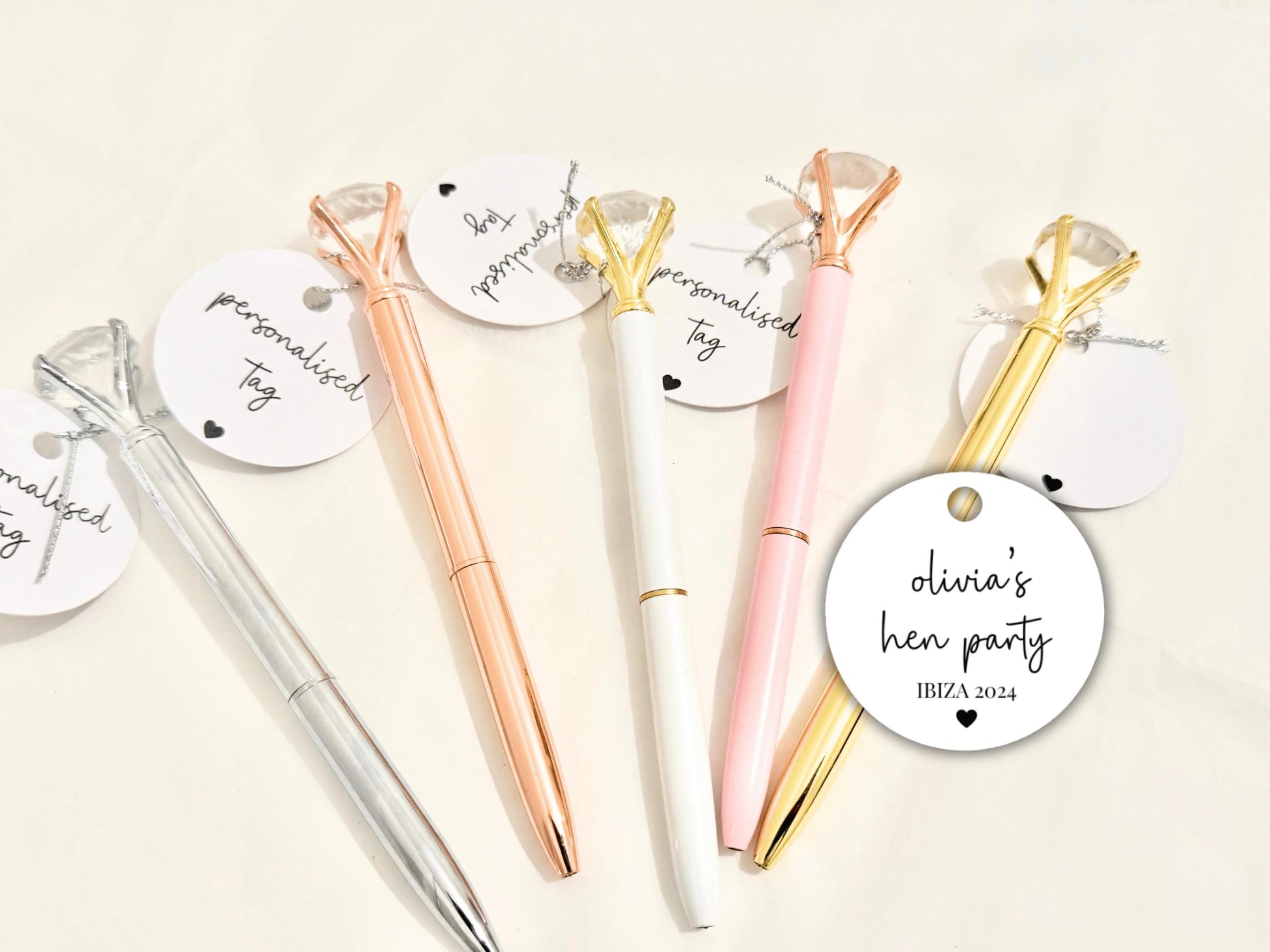 Personalised Hen Party Pen Tag/ Team Bride Hen Weekend Sparkle Party Gifts/ Bridesmaid Proposal Box Filler Bridal Shower Diamond Crystal Pen