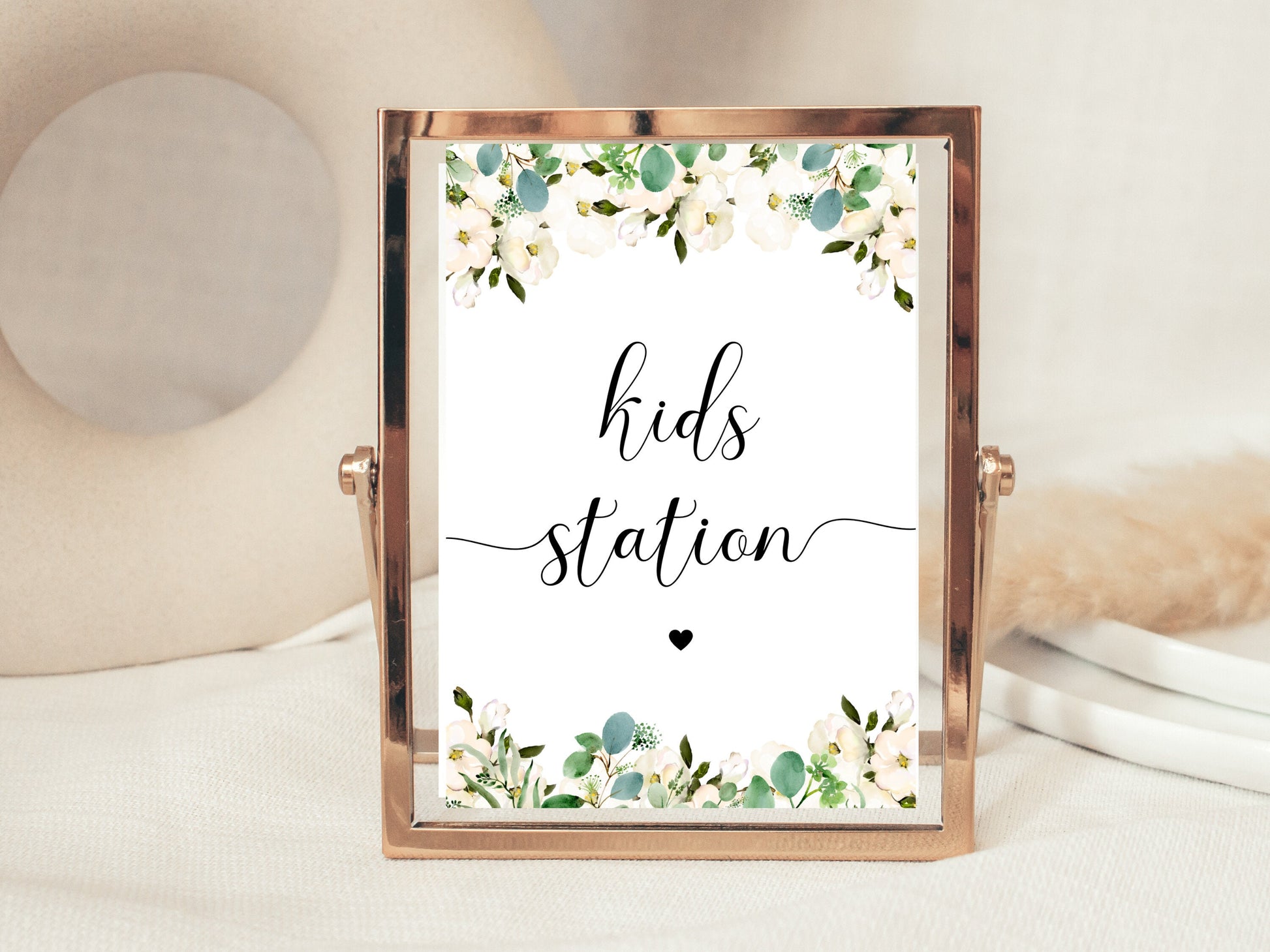 Personalised Kids Activity Sign/ Greenery Floral Wedding Kids Activity Table Sign Party Poster/Eucalyptus Kids Favours Sign for Wedding Sign.