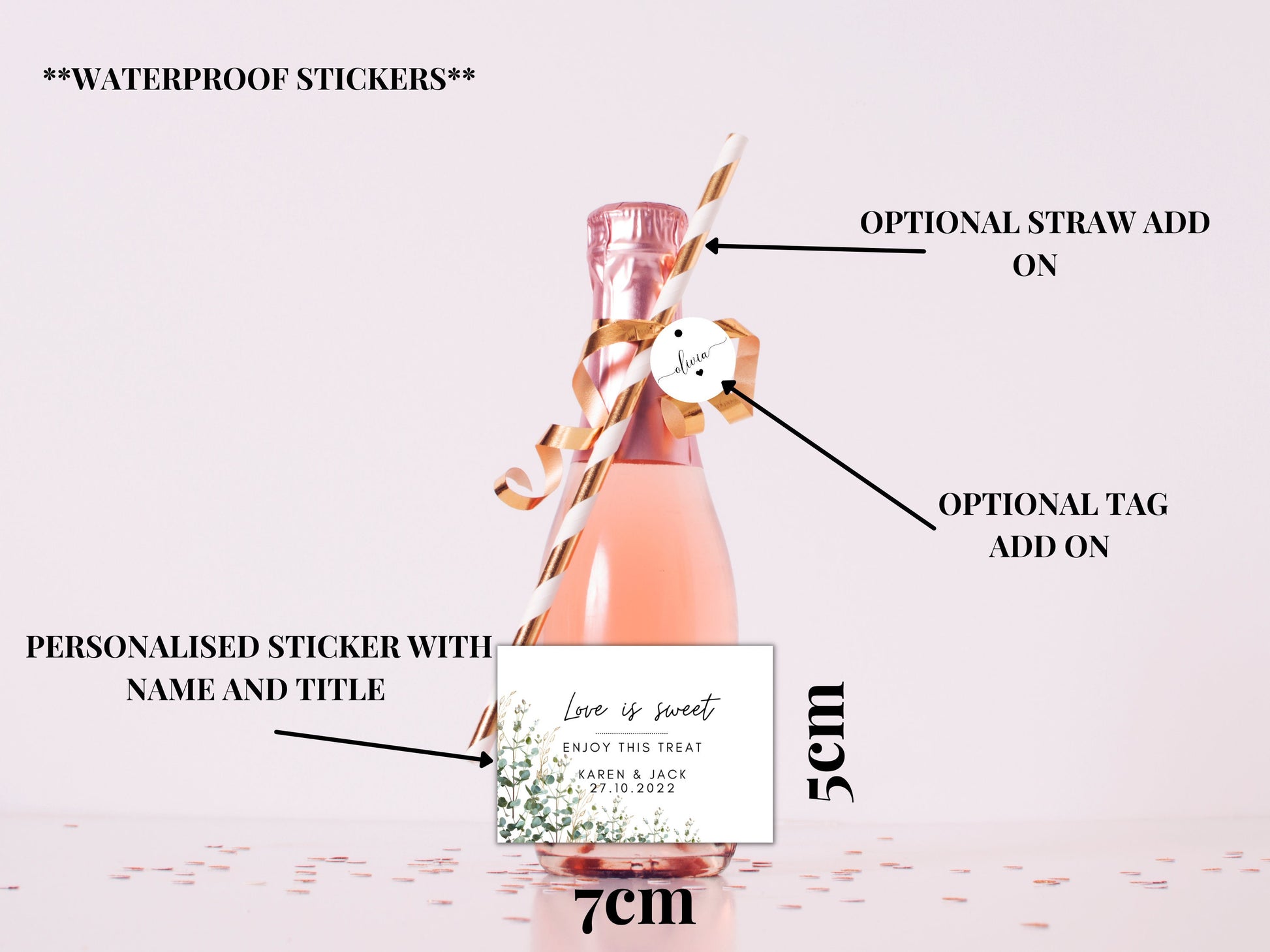 The straw which can be secured to the bottle using ribbon of your choice is available in Pink and White Stripe, Silver, Holographic/ Rainbow, Rose Gold, Red and White, Gold.