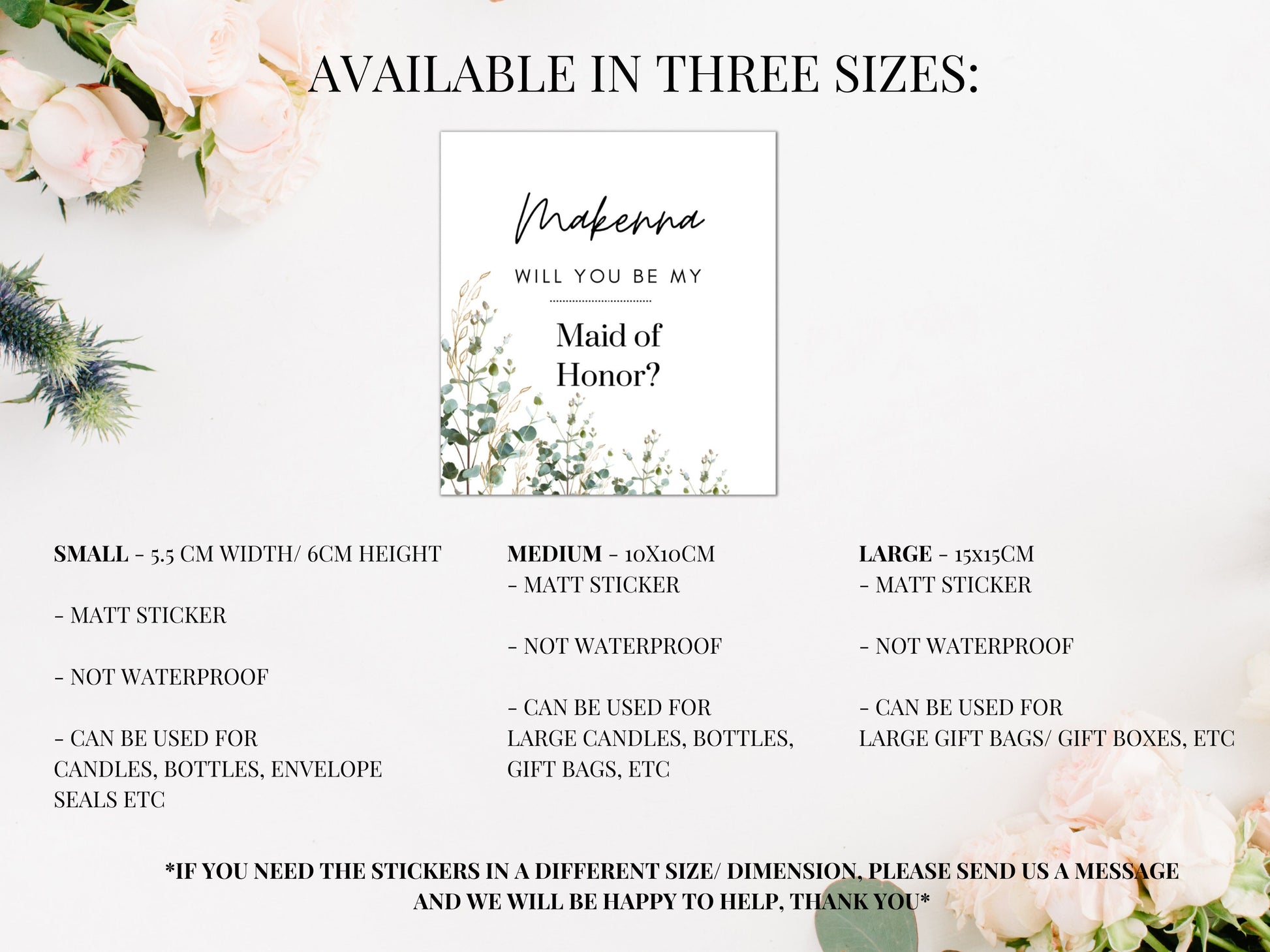 Personalised Maid of Honor Candle Label/ Greenery Gift Box Sticker/ Bag for Presents Label/ Botanical Proposal Box/ Bachelorette