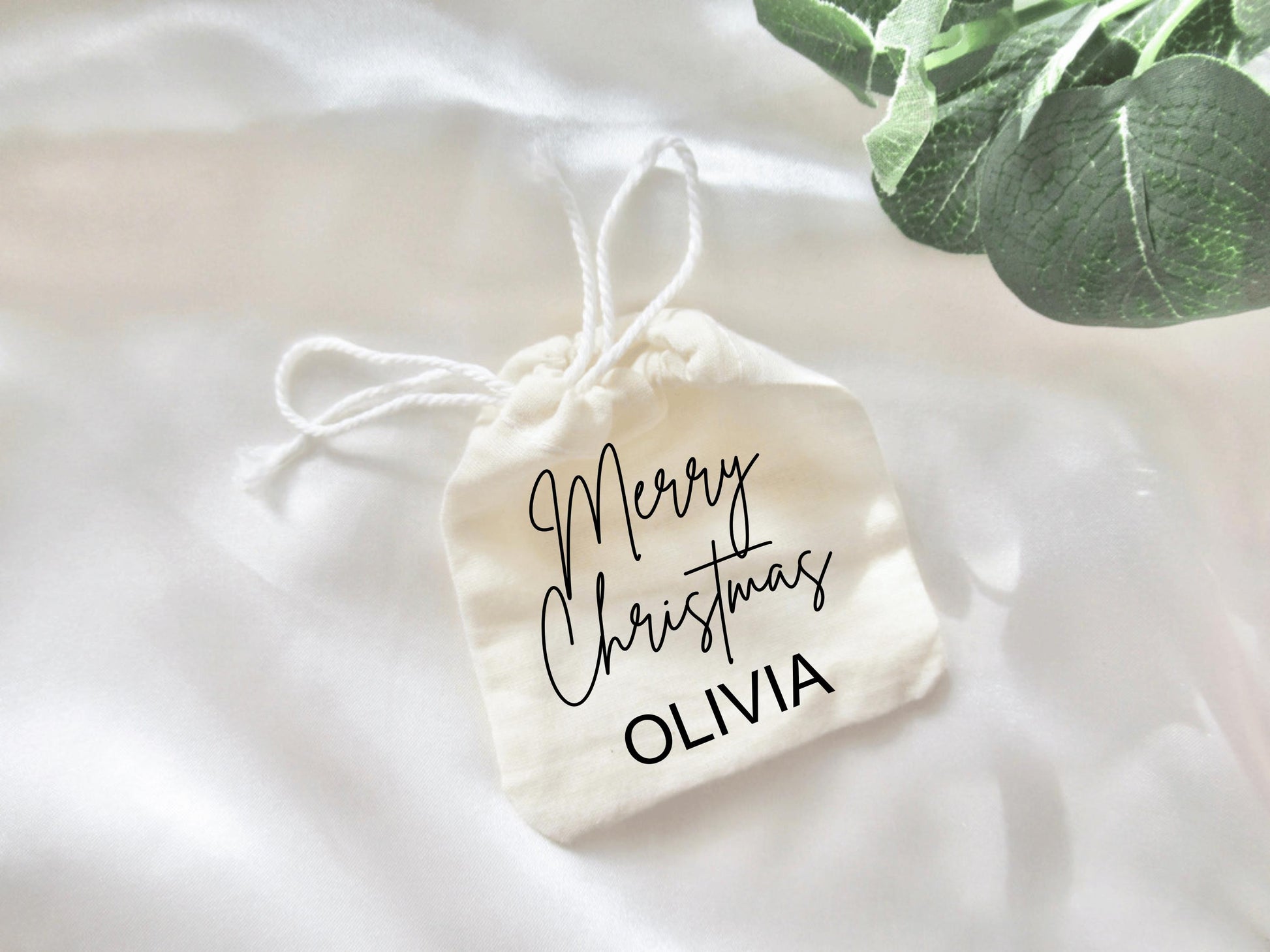 Personalised Merry Christmas 100% Cotton Muslin Drawstring Bags/ Seasons Greetings Favour/ Happy Christmas Bags/ Stocking Filler Storage.
