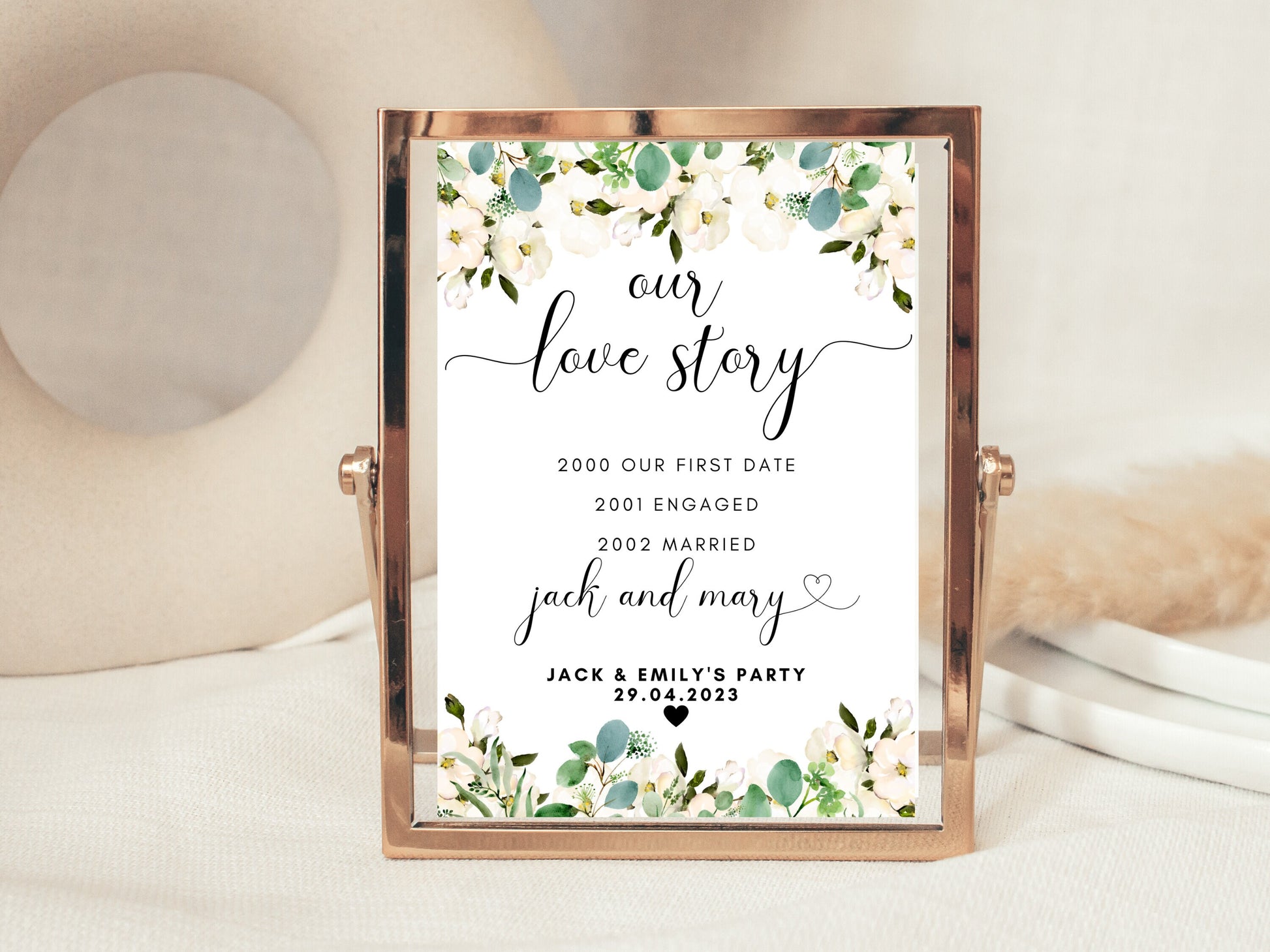 Personalised Our Love Story Sign/ Greenery Floral Wedding Fun Custom Relationship Timeline Poster/ Eucalyptus Wedding Our Love StorySign