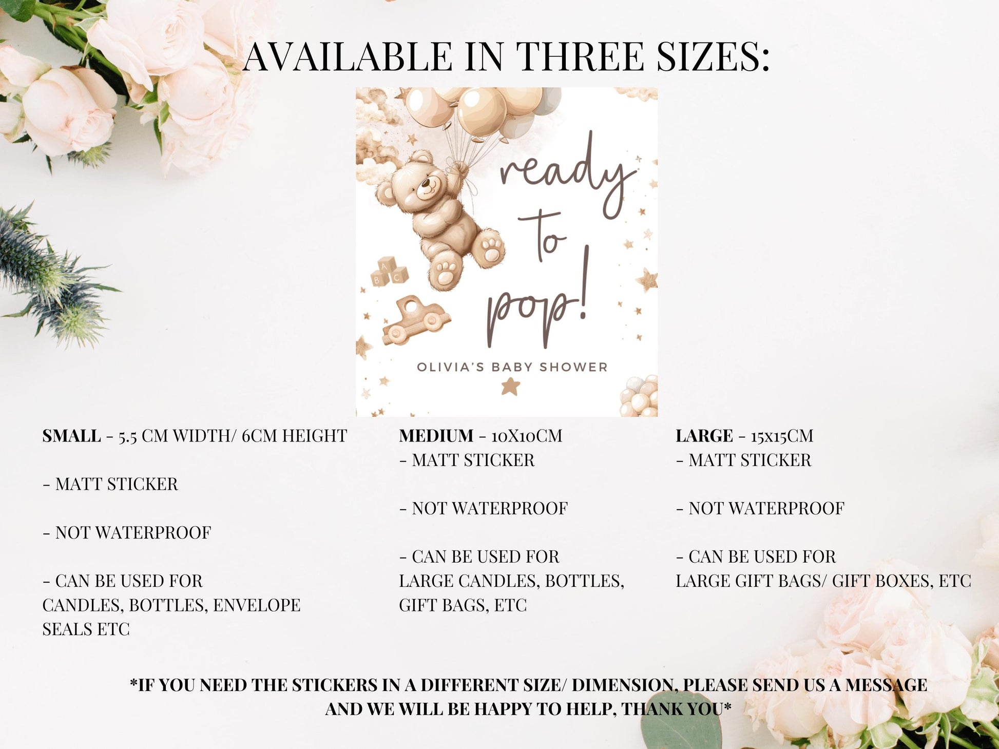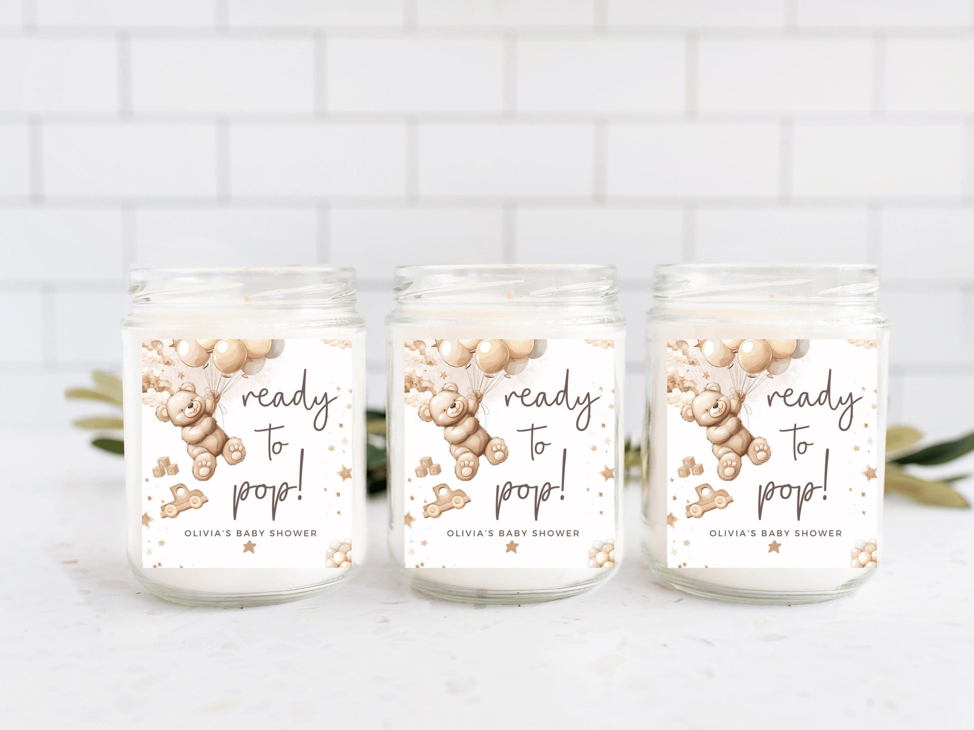 Personalised Ready to Pop Baby Shower Candle Label/ Mummy to Be Gender Reveal Favours/We Can Bearly Wait Neutral Teddy Bear Balloons Sticker.