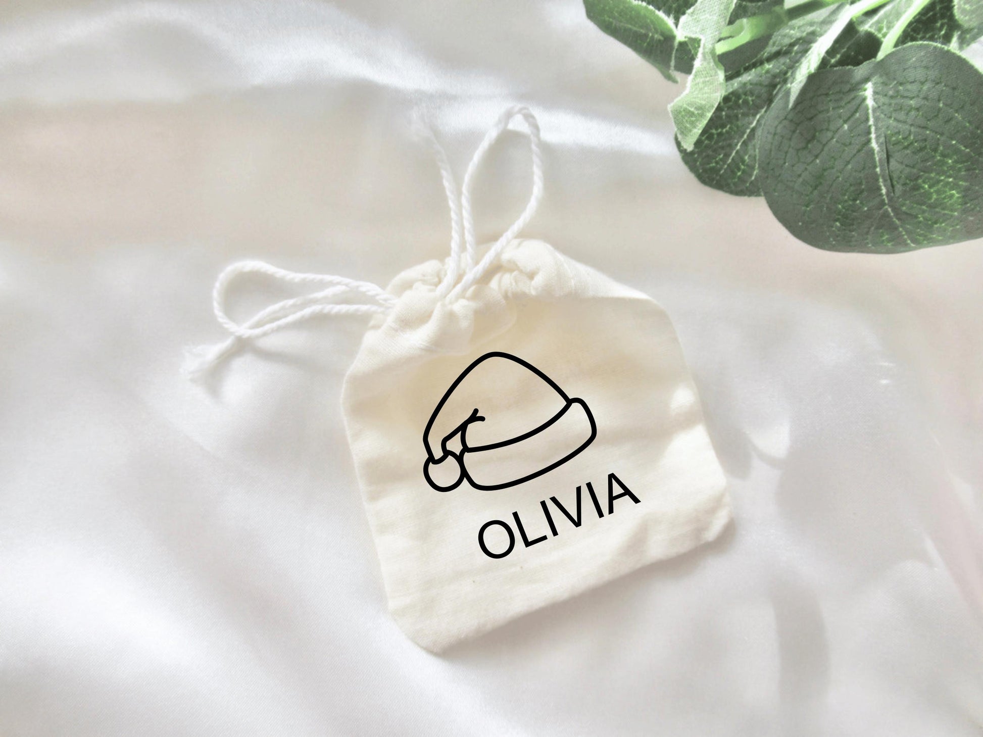 Personalised Santa Hat Christmas Tree Cotton Drawstring Bags/ Seasons Greetings Favour/ Merry Christmas/ Stocking Filler Storage Keepsakes