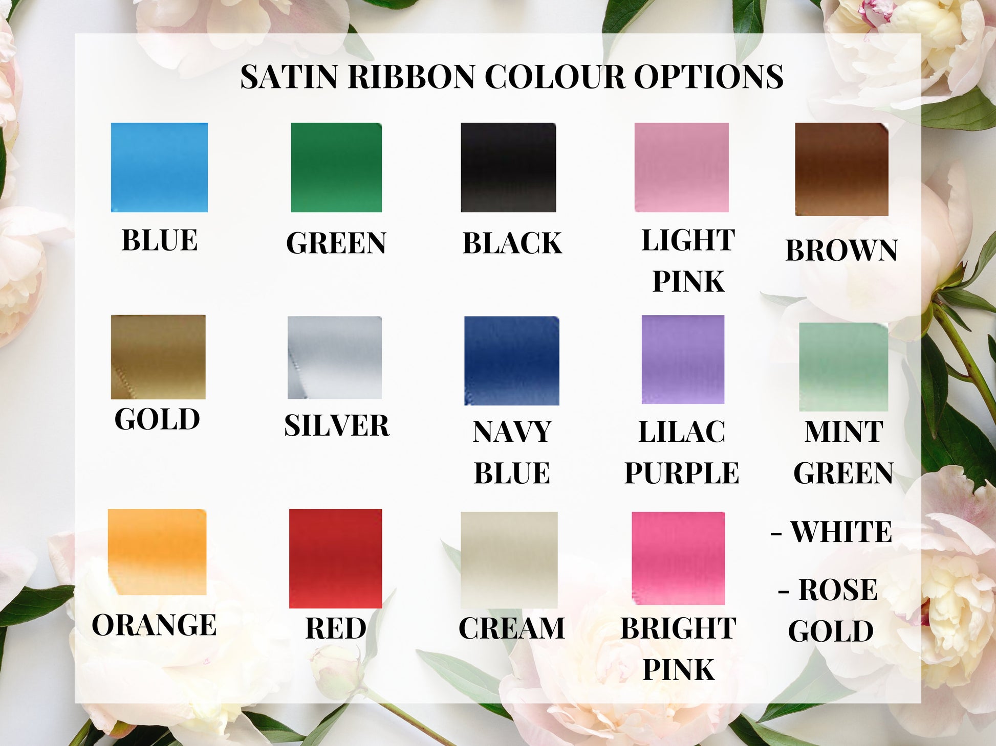 The ribbon which you can use to tie around the bottle and secure the tag and straw is available in Blue, Green, Black, Light Pink, Brown, Gold, Silver, Navy Blue, Lilac Purple, Mint Green, Orange, Red, Cream, Bright Pink and White. We also have natural Jute String available.
