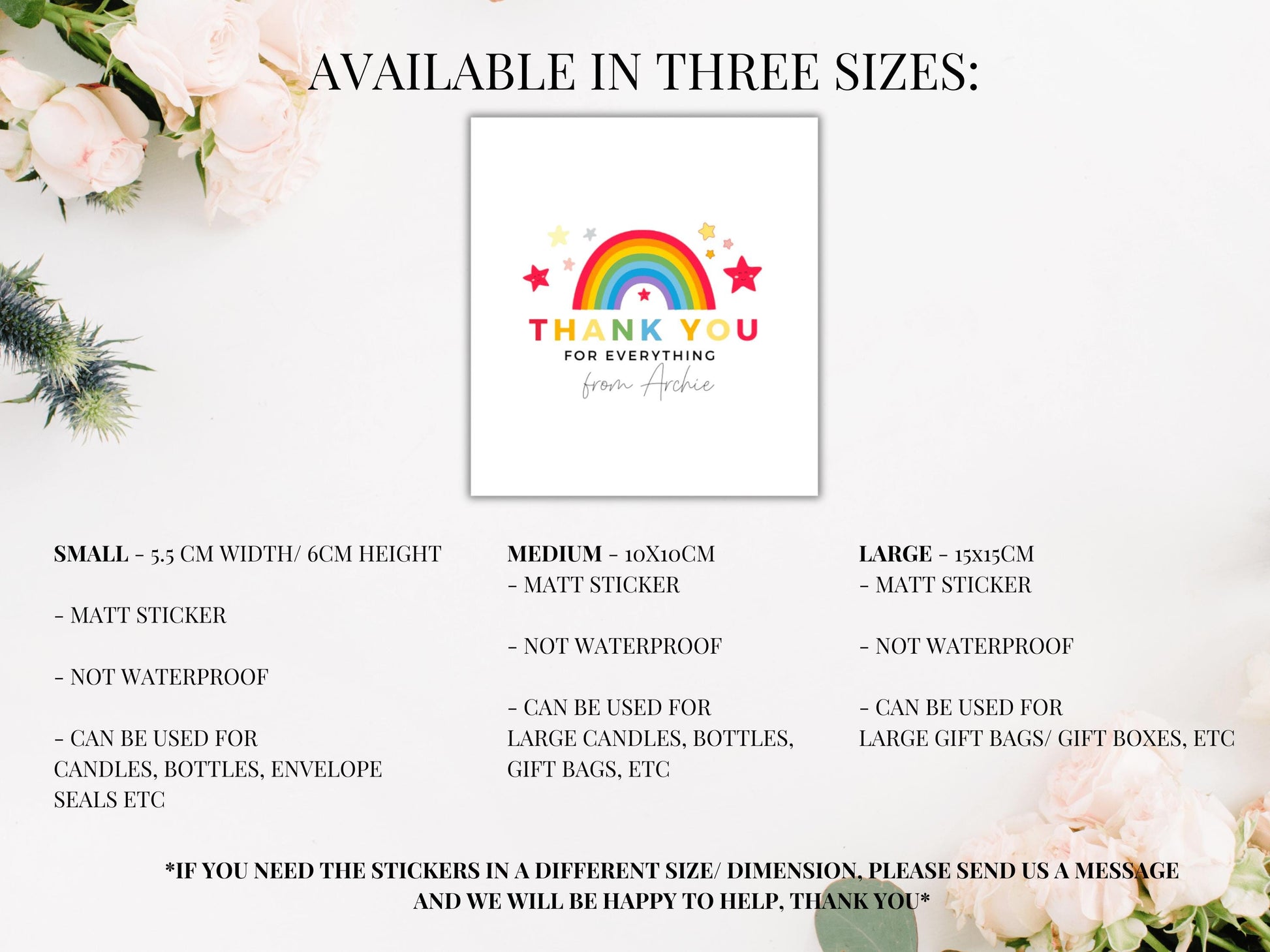 **If you need the sticker in a different size/ dimension, please send us a message and we will be happy to help, thank you**