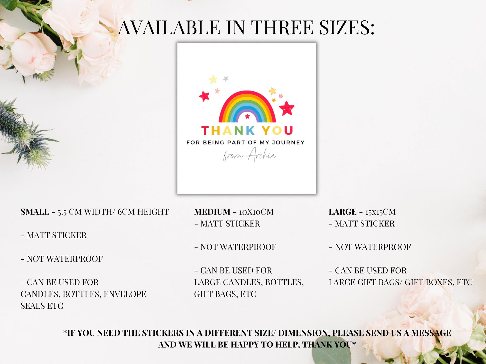 **If you need the sticker in a different size/ dimension, please send us a message and we will be happy to help, thank you**