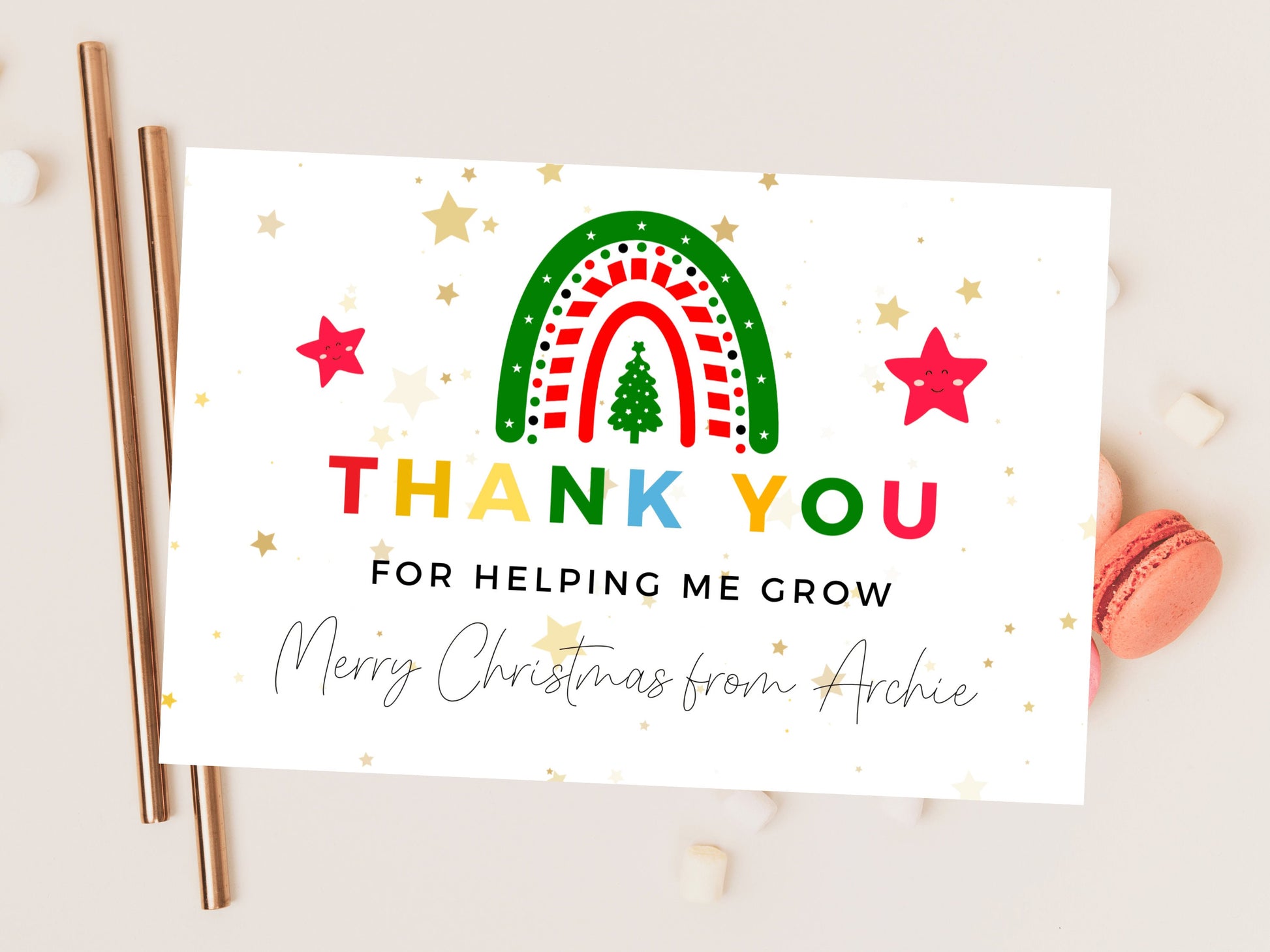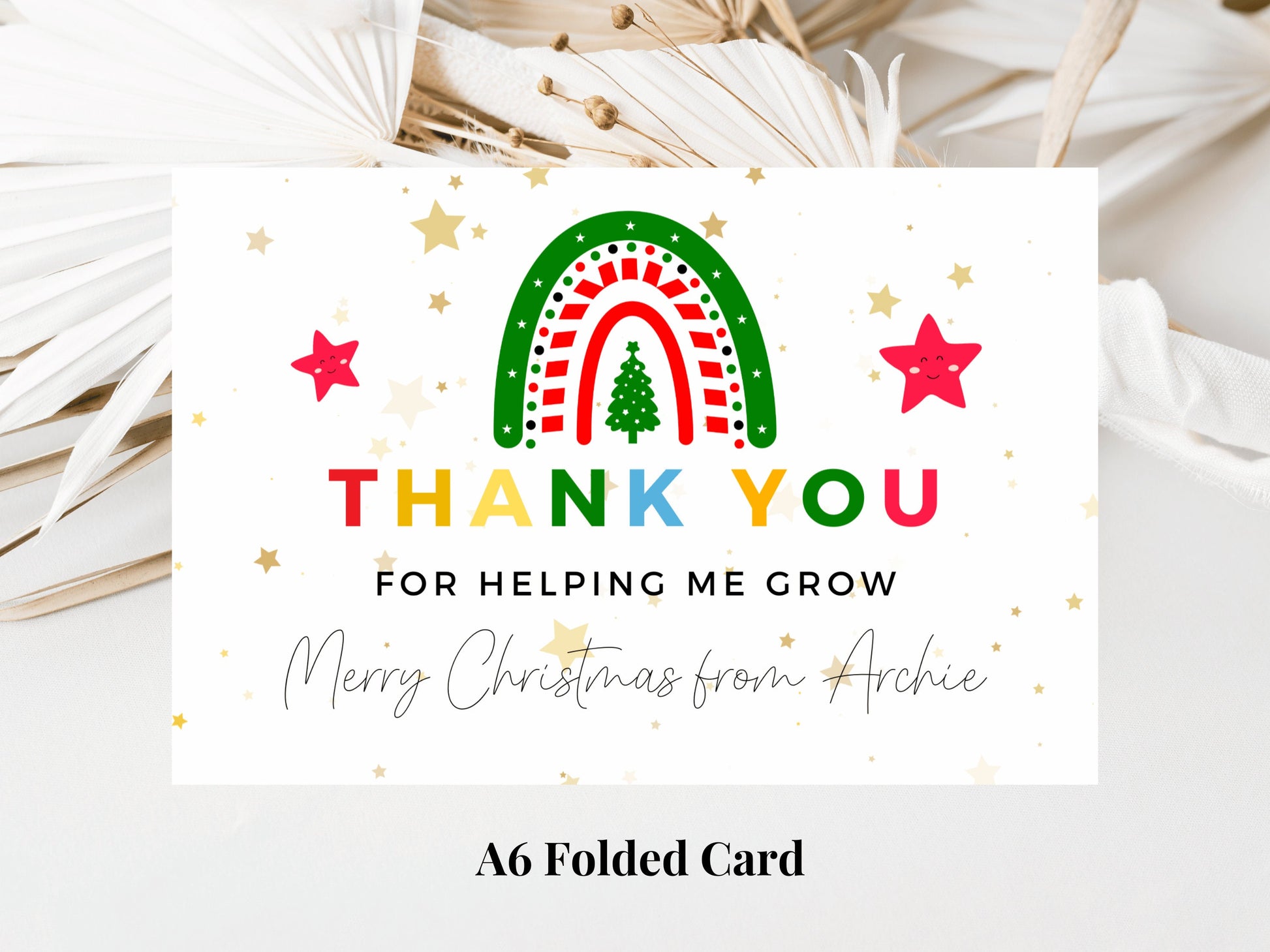 Personalised Thank You for Helping Me Grow Merry Christmas Card/ Teacher Appreciation/ Xmas End of School Year Thank You Season Greetings