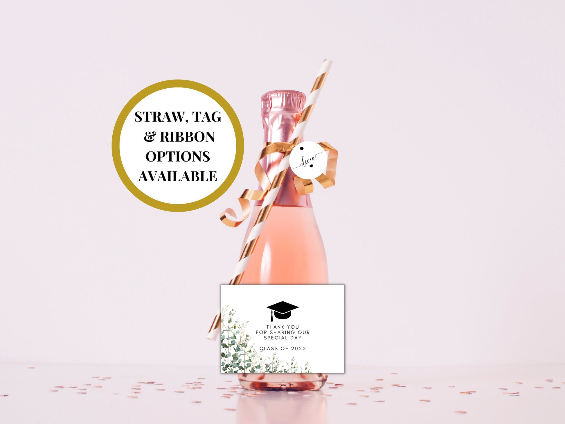 The straw which can be secured to the bottle using ribbon of your choice is available in Pink and White Stripe, Silver, Holographic/ Rainbow, Rose Gold, Red and White, Gold.