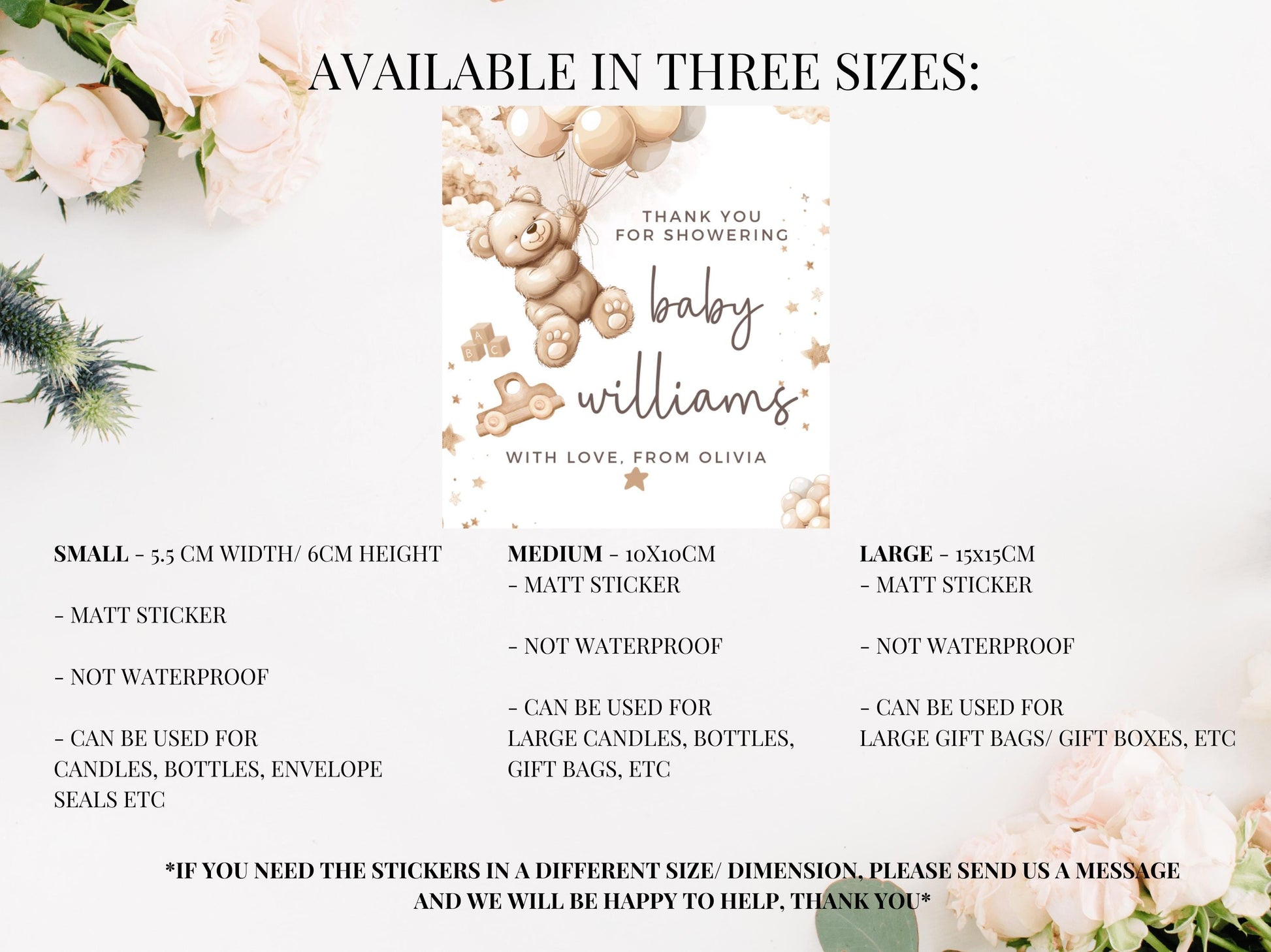 Personalised Thank You for Showering Baby With Love Candle Label/ Mummy to Be Gender Reveal Favours/ Neutral Teddy Bear Balloons Sticker