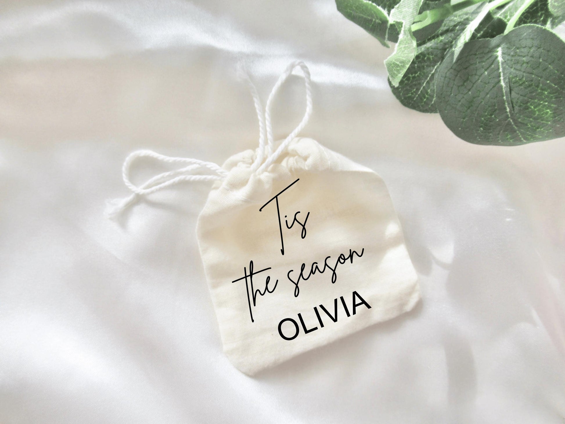 Personalised Tis the Season Merry Christmas Cotton Drawstring Bags/ Seasons Greetings Favour/ Happy Christmas Bags/ Stocking Filler Storage