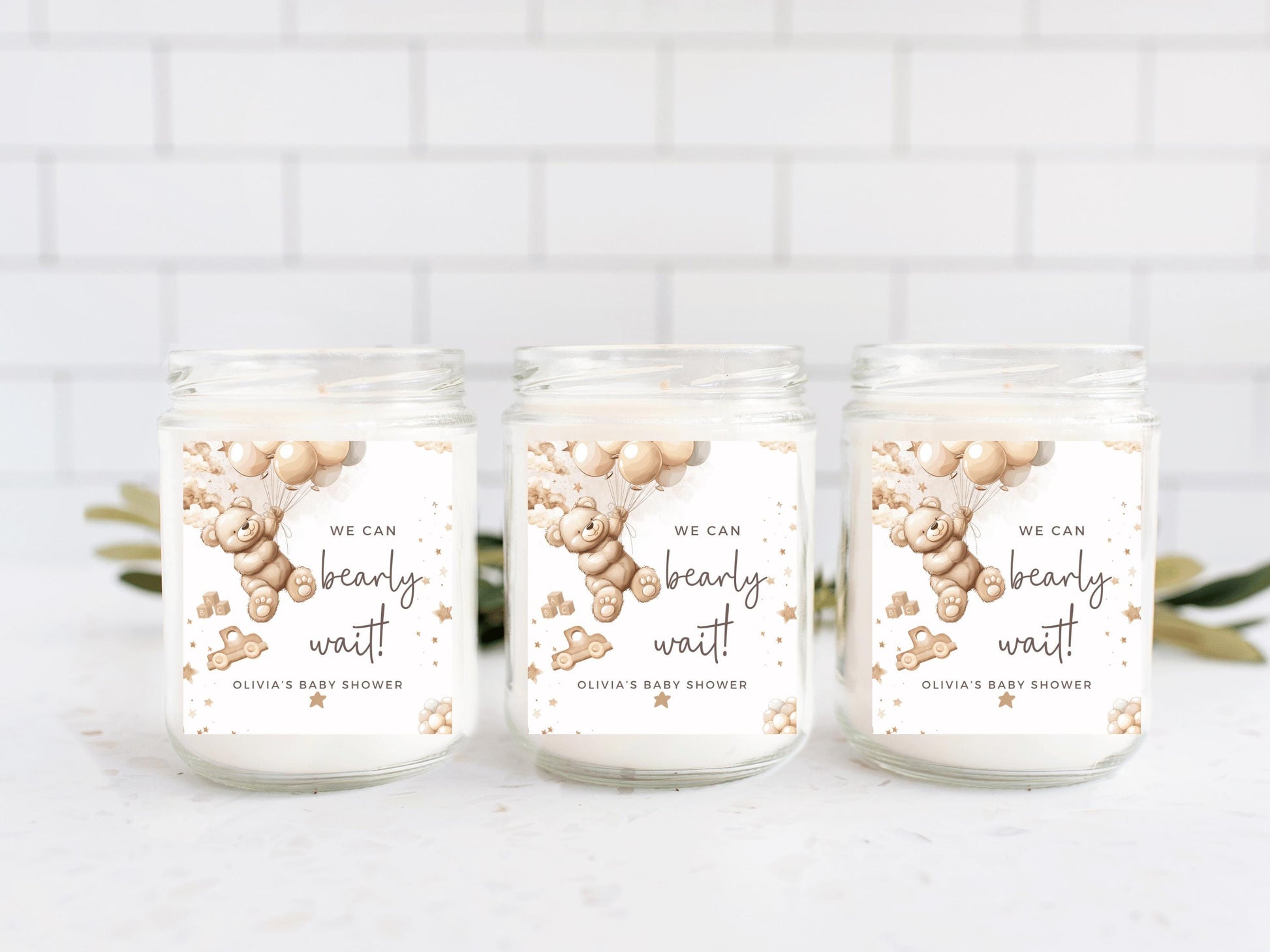 Personalised We Can Bearly Wait Baby Shower Candle Label/ Mummy to Be Gender Reveal Favours/ Neutral Teddy Bear Balloons Sticker.