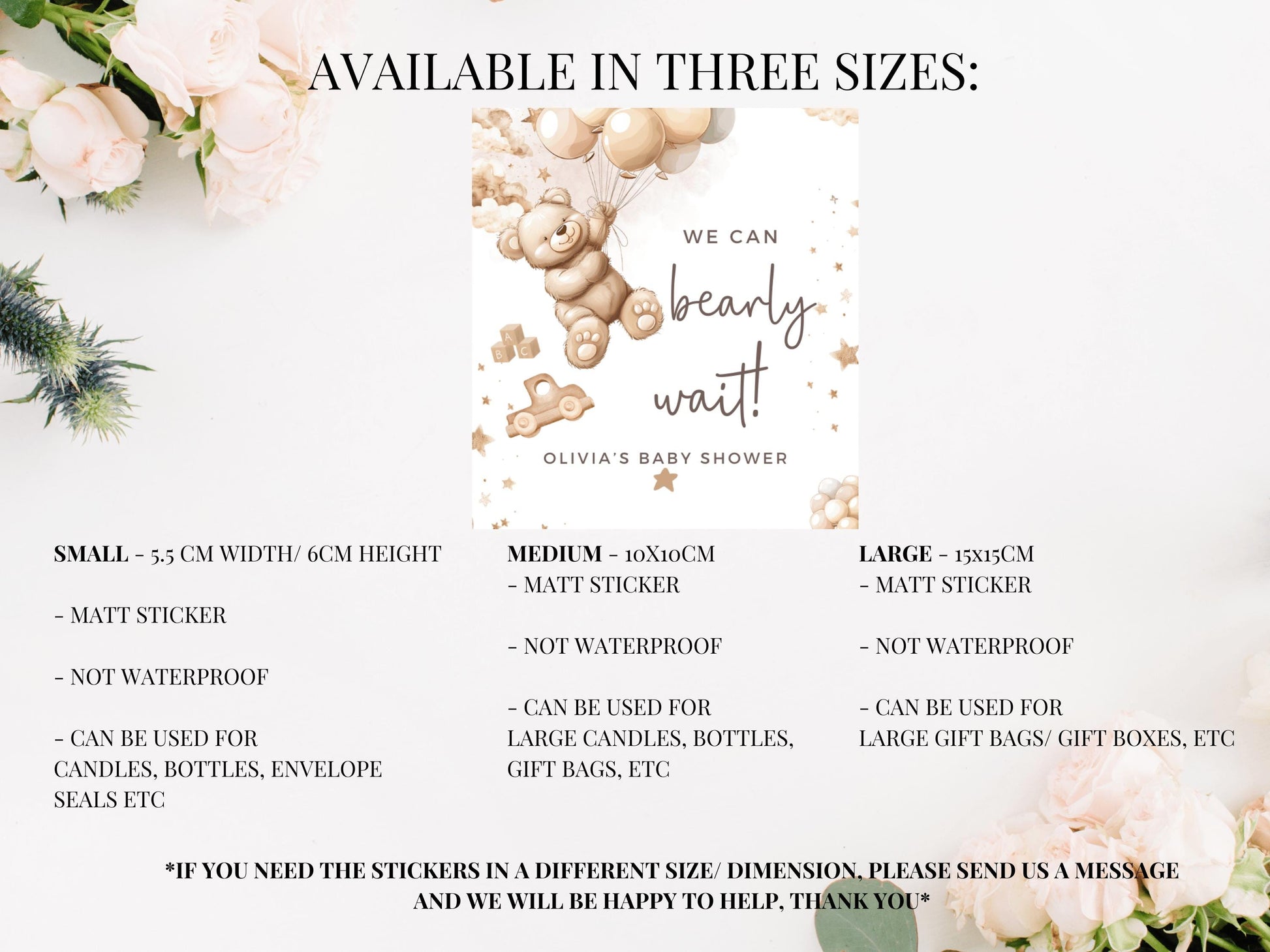 Personalised We Can Bearly Wait Baby Shower Candle Label/ Mummy to Be Gender Reveal Favours/ Neutral Teddy Bear Balloons Sticker