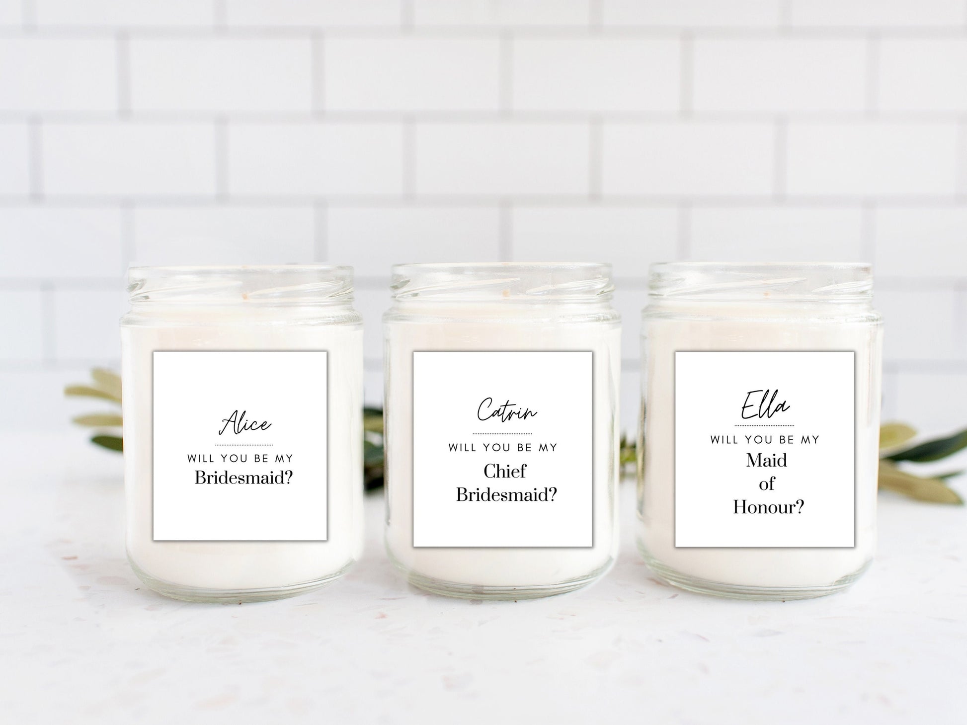 Personalised Will You Be My Bridesmaid Label/ Monochrome Print Proposal Box Label/ Hen Do/ Bachelorette/ Maid of Honour Candle Label/ A05