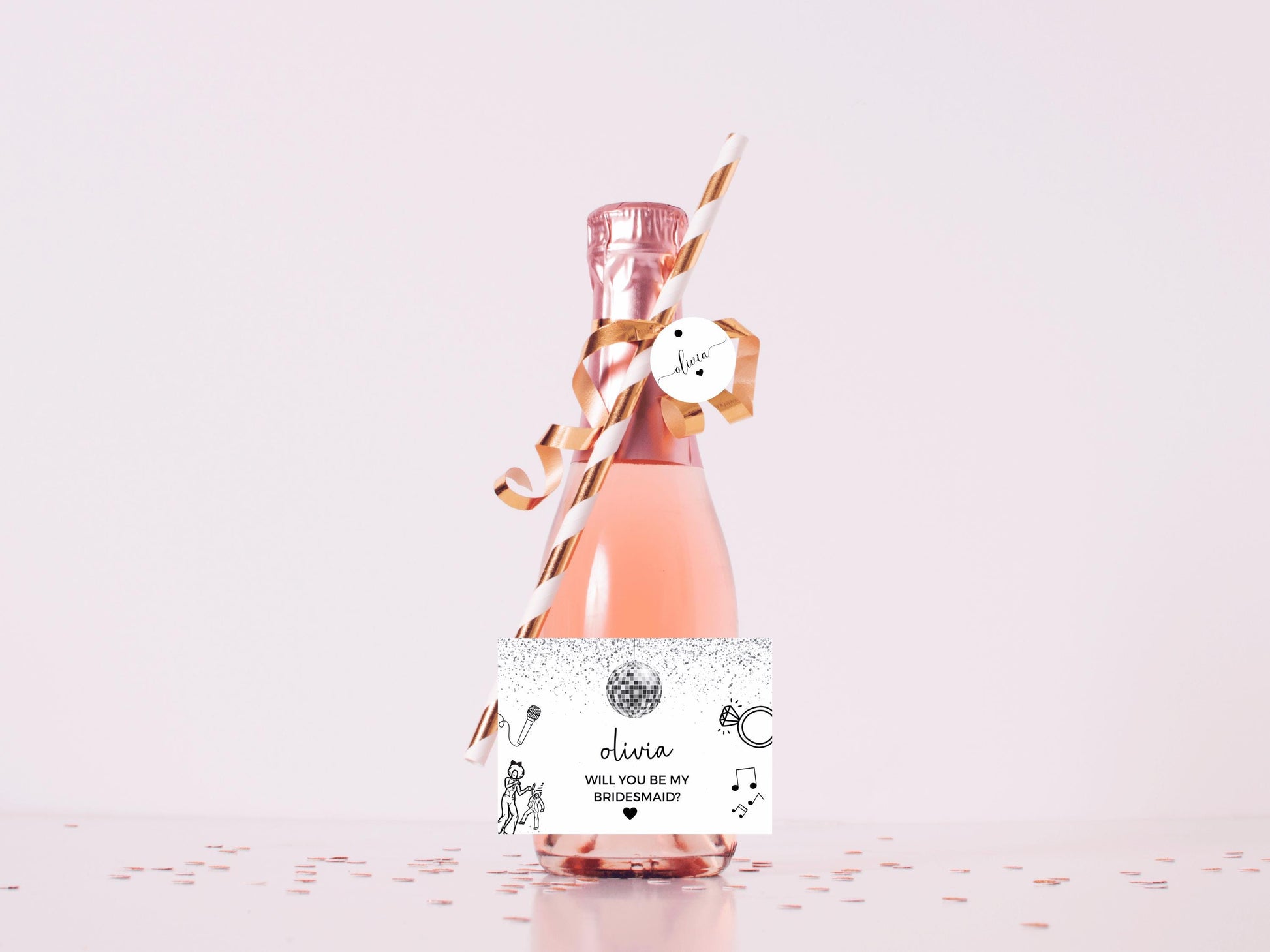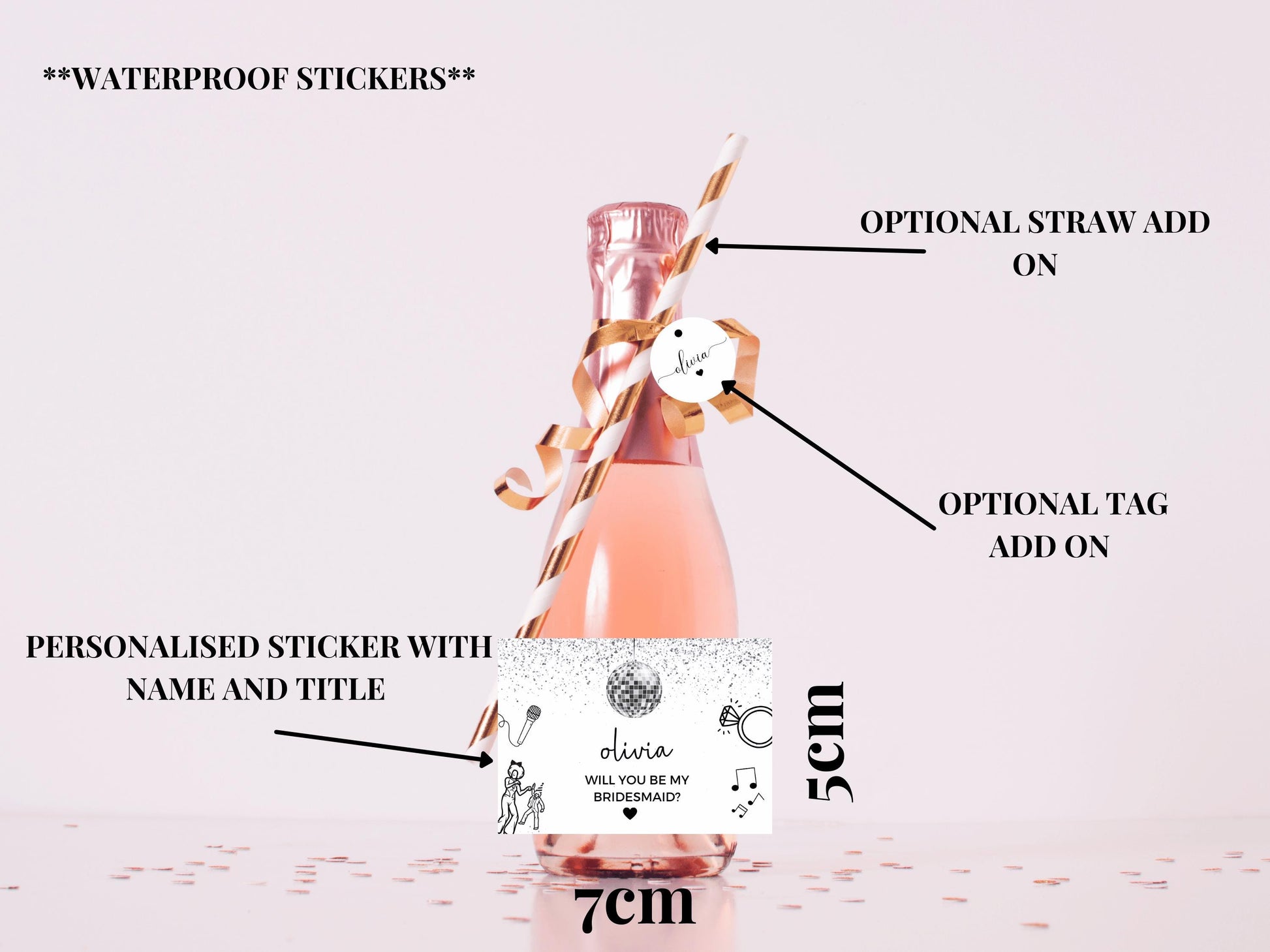 Personalised Will You Be My Bridesmaid Mini Prosecco Bottle Label/ Silver Hen Weekend Disco Ball Hen Party/ Maid of Honour Wine Sticker.