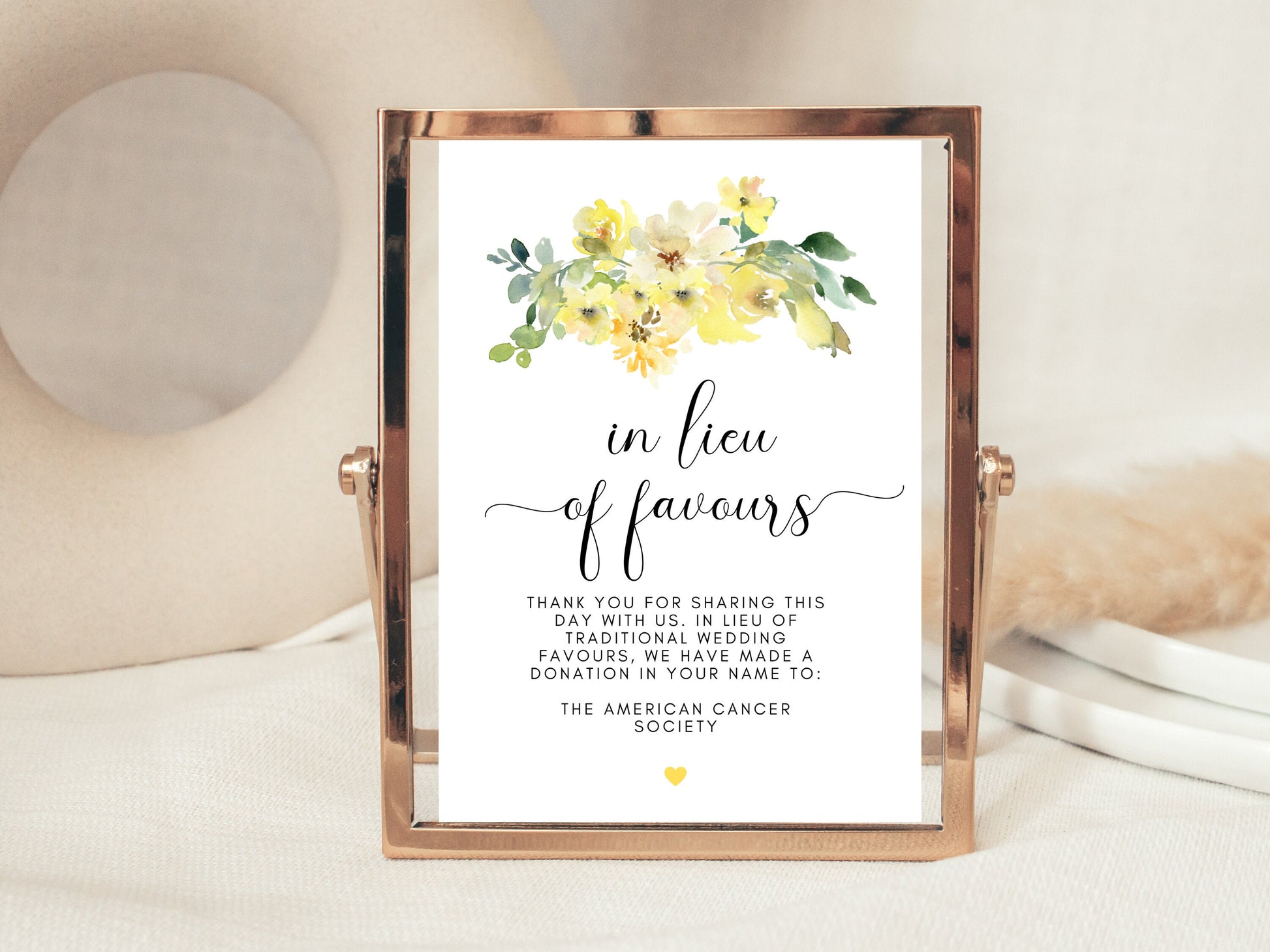 Personalised Yellow In Lieu of Favours Sign/ Thank You for Sharing This Day With Us in Lieu of Traditional Favours, Please Make a Donation