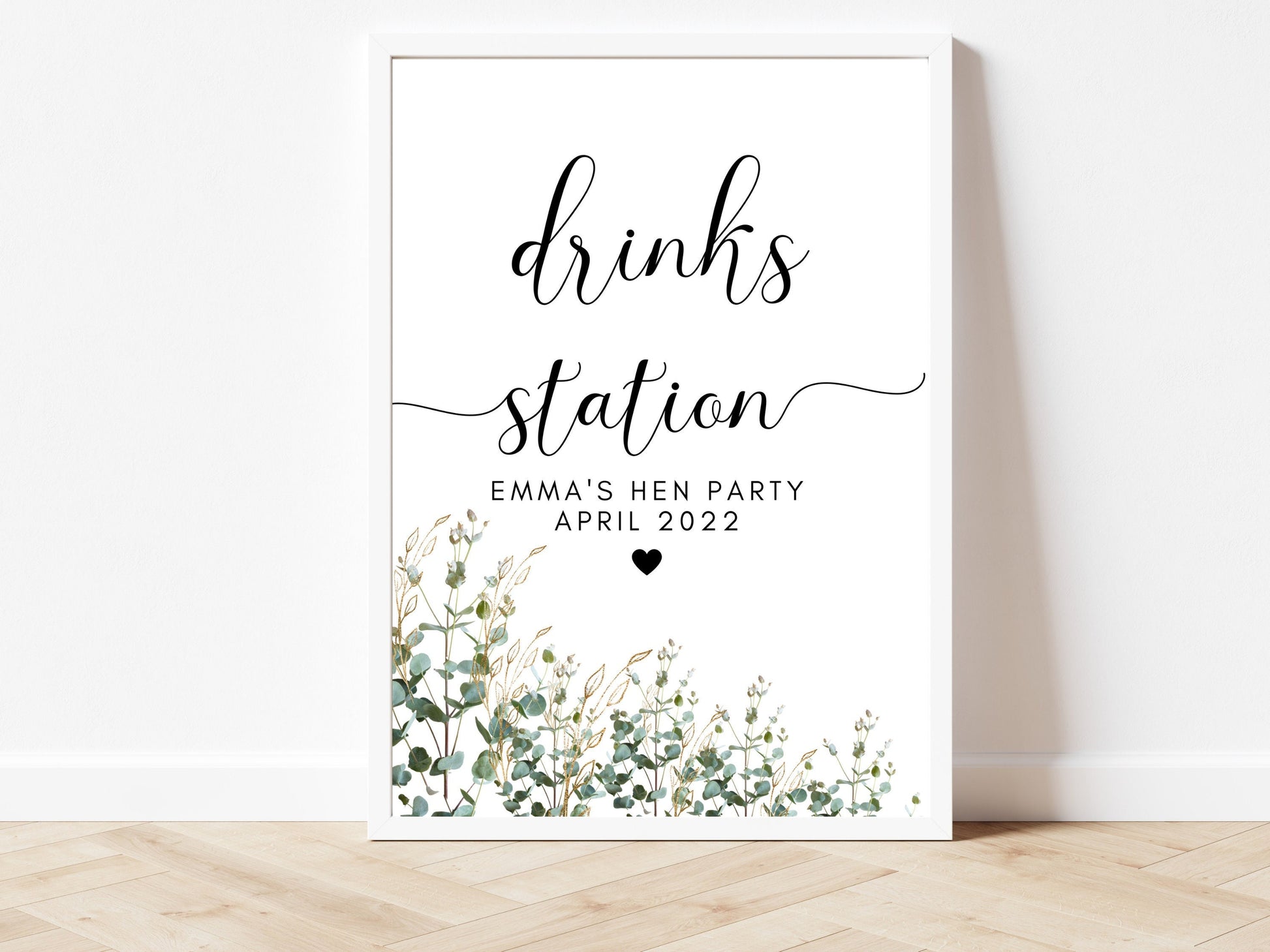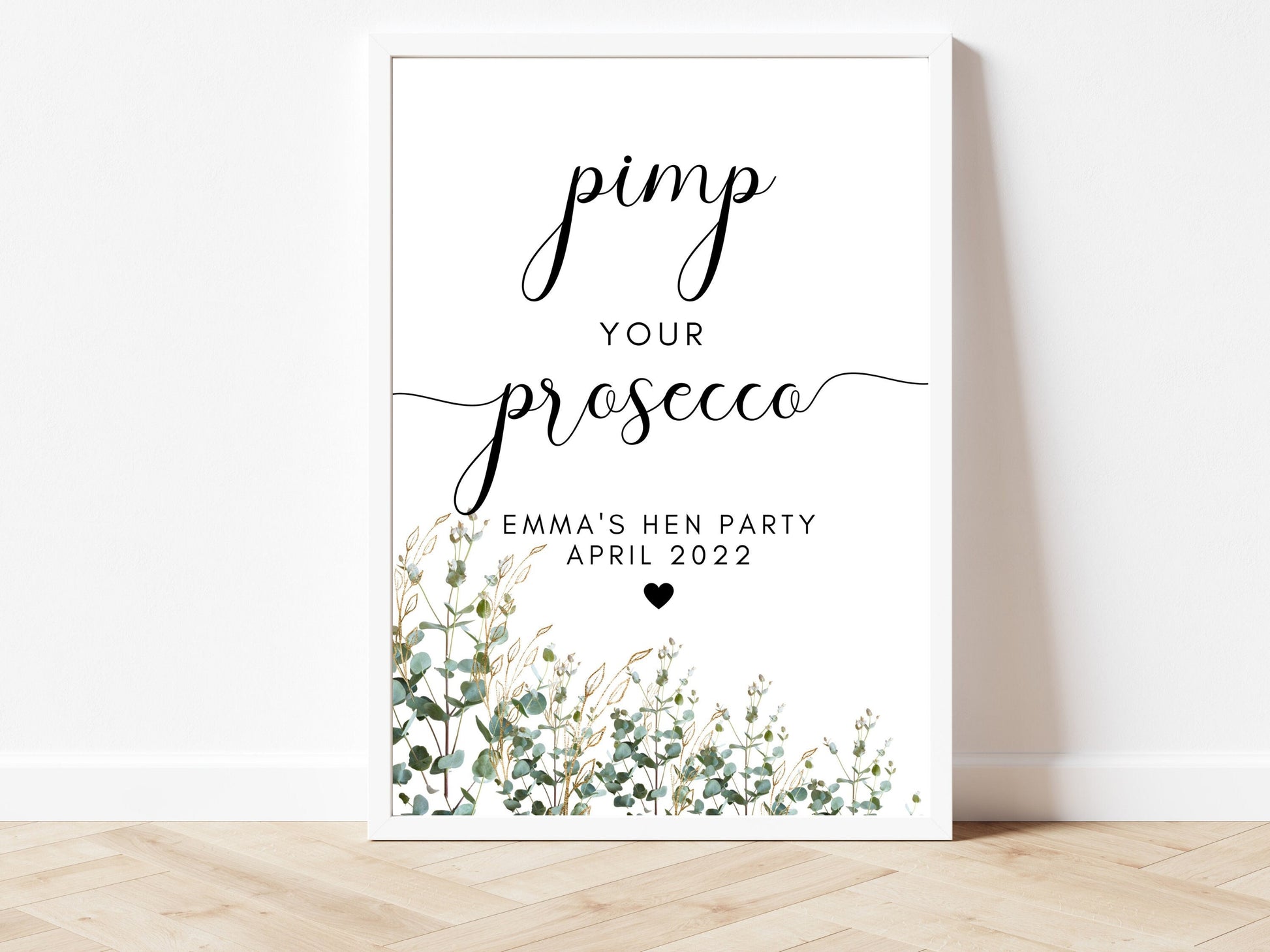 Pimp Your Prosecco Sign/ Eucalyptus Kiss the Miss Goodbye/ Greenery Cocktail/ Floral Selfie Station/ Bride to Be Party Sign/ Hen Do Decor