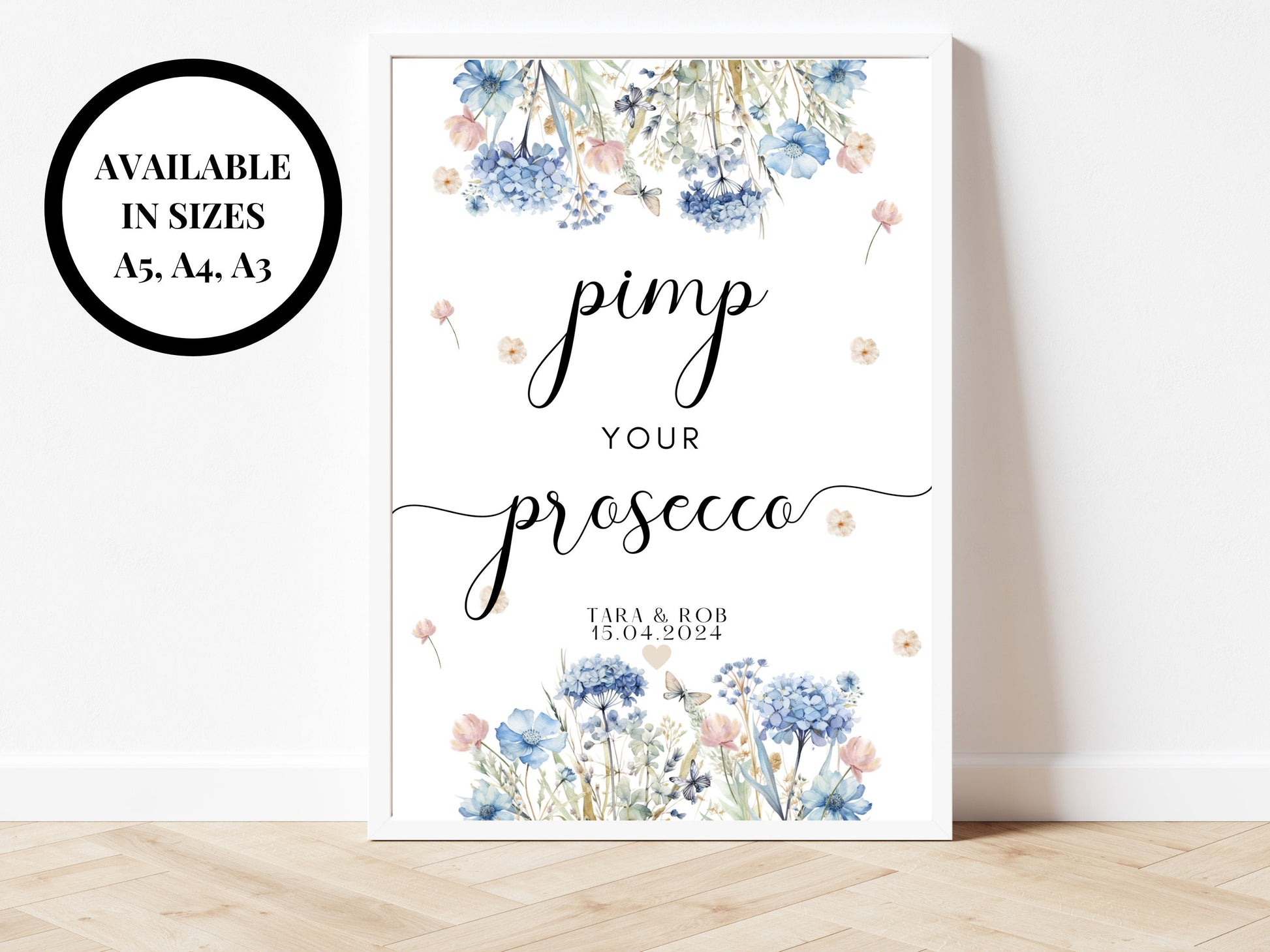 Pimp Your Prosecco Sign/ Personalised Blue Theme Wedding Reception Bar Alcohol Cocktails Mocktails/ Hen Party/ Bridal Shower/ Bachelorette