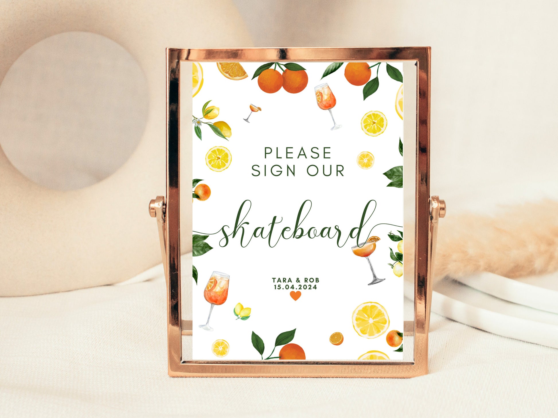 Please Sign Our Skateboard Poster/ Spring Summer Lemons Oranges Mediterranean/ Italian Style Wedding Reception Venue Novelty Keepsake Sign