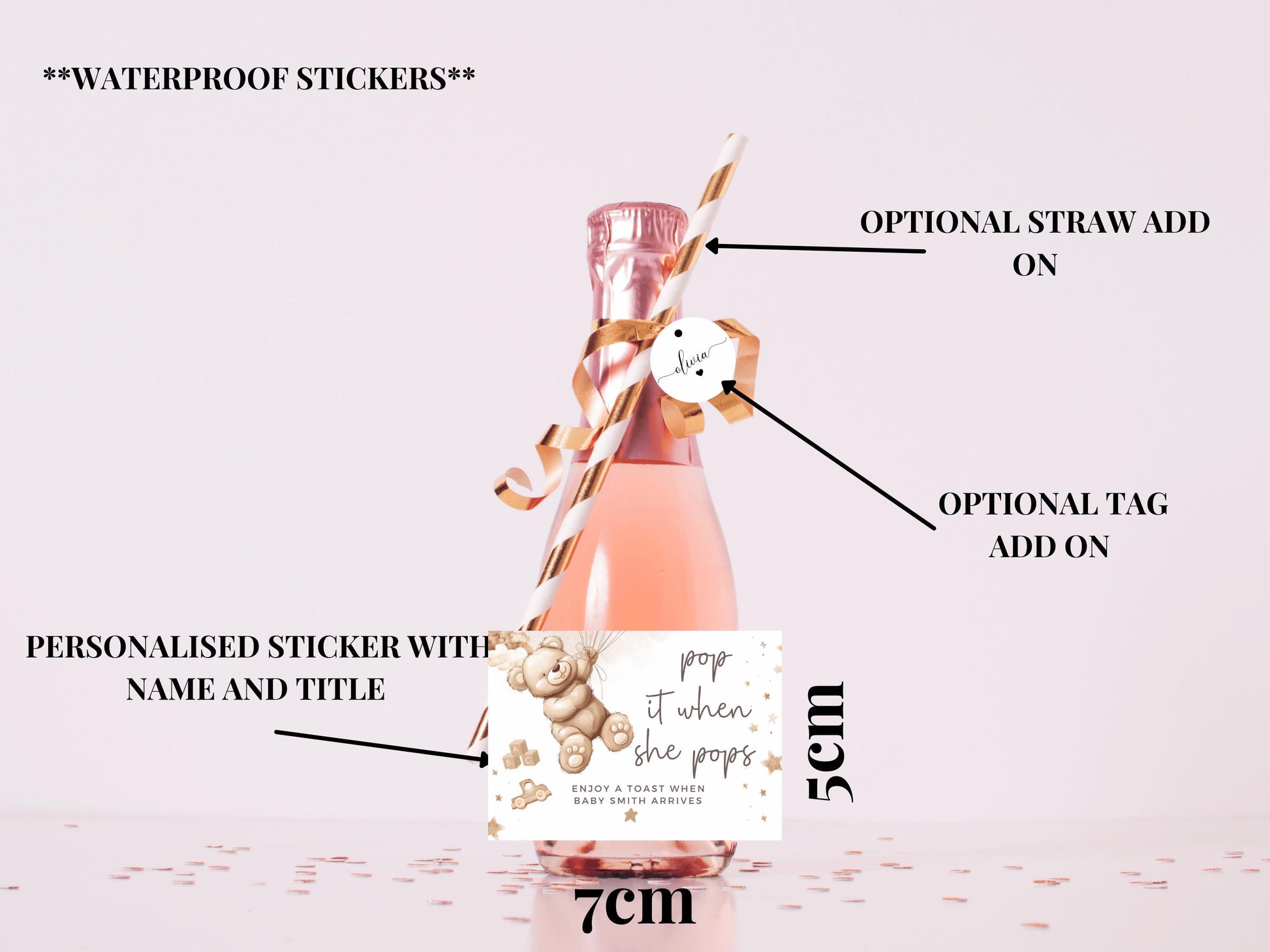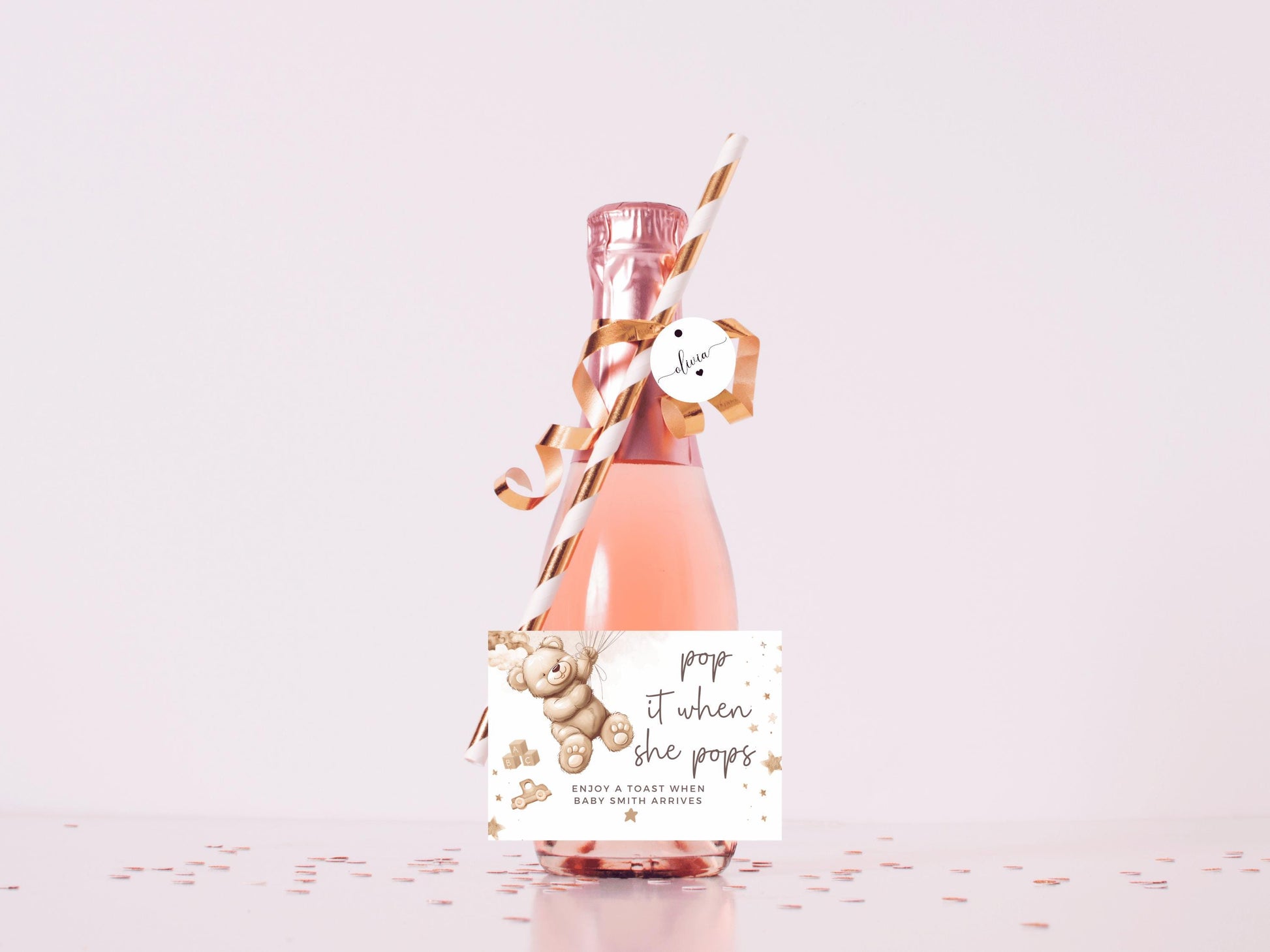 Pop It When She Pops Baby Shower Prosecco Bottle Stickers/ Personalised Neutral Gender Reveal/ Teddy Bear Balloons/ We Can Bearly Wait Label