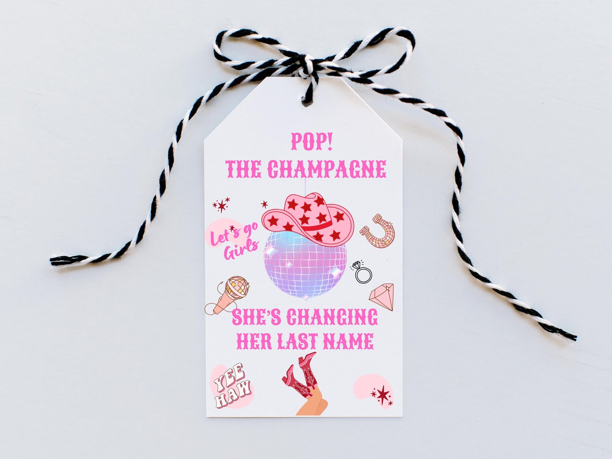 Pop the Champagne Shes Changing Her Last Name Last Rodeo Gift Tag/ Personalised Bottle Tag/Let's Go Girls Nashville Country Cowboy Boots Tag.