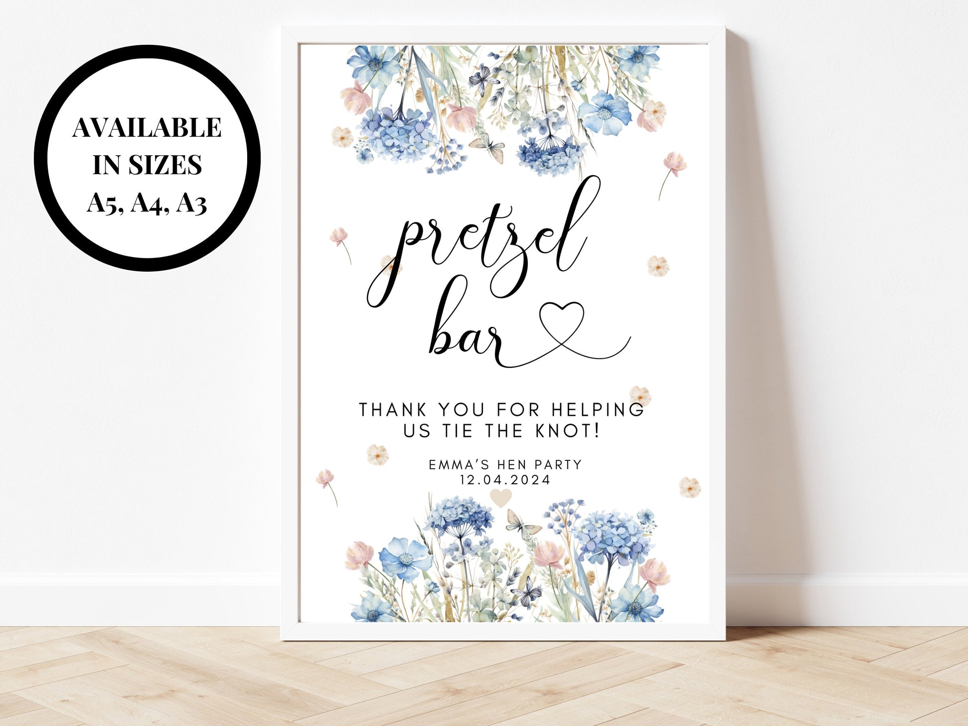 Pretzel Bar Sign/ Thank You for Helping Us Tie the Knot Poster/ Please Take A Favour/ Blue Theme Wedding Reception/ Floral Pastel Neutral