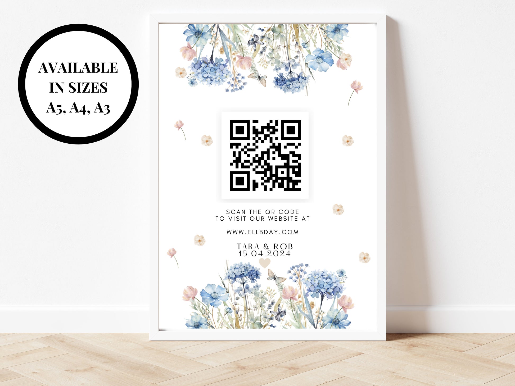 QR Code Sign/ Personalised Blue Theme Wedding Website Link Code Reception Venue Decor/ Hen Party/ Bridal Shower/ Bachelorette QR Code Party.