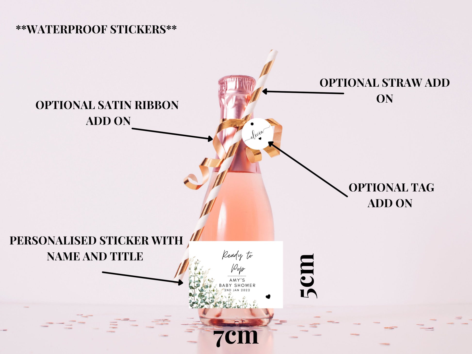 Ready to Pop Baby Shower Stickers/ Personalised Gender Reveal Party Prosecco Bottle Label/ Gold Floral Baby Shower Champagne Label/ A11