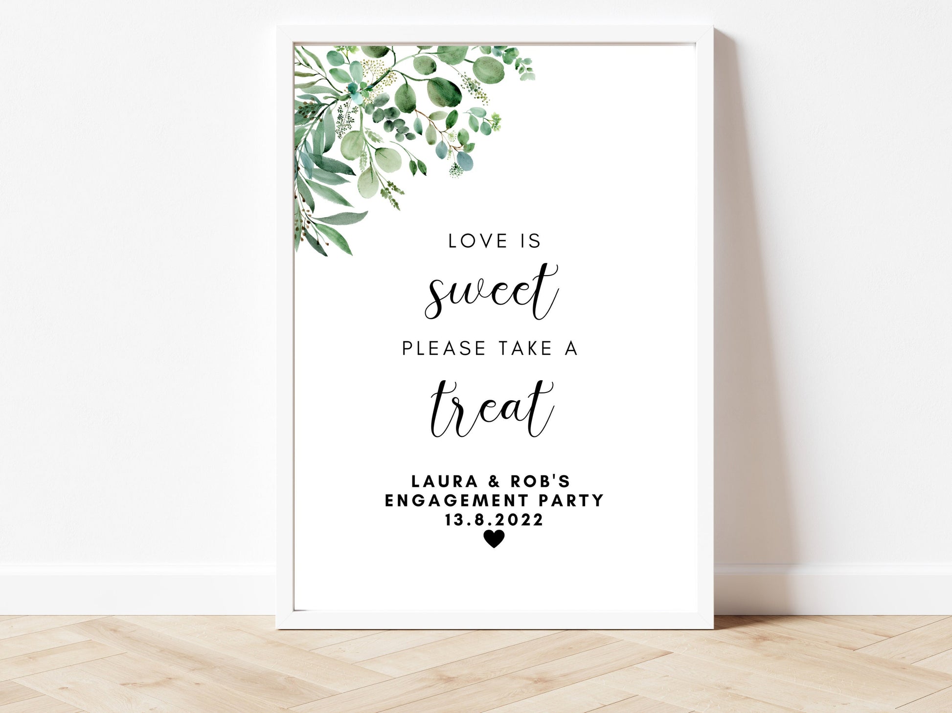 Selfie Station Sign/ Personalised Engagement Party Social Media Lets Celebrate Poster/ Floral Modern Eucalyptus New Engaged Couple