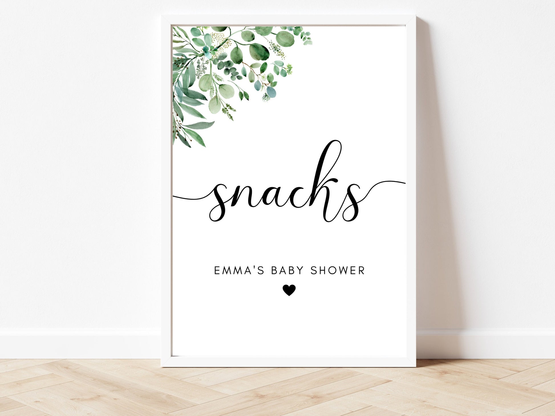 Snacks Sign/ Personalised Birthday Party Print/ Eucalyptus Floral Greenery Snacks and Treats Poster/ Modern Minimalist Simple