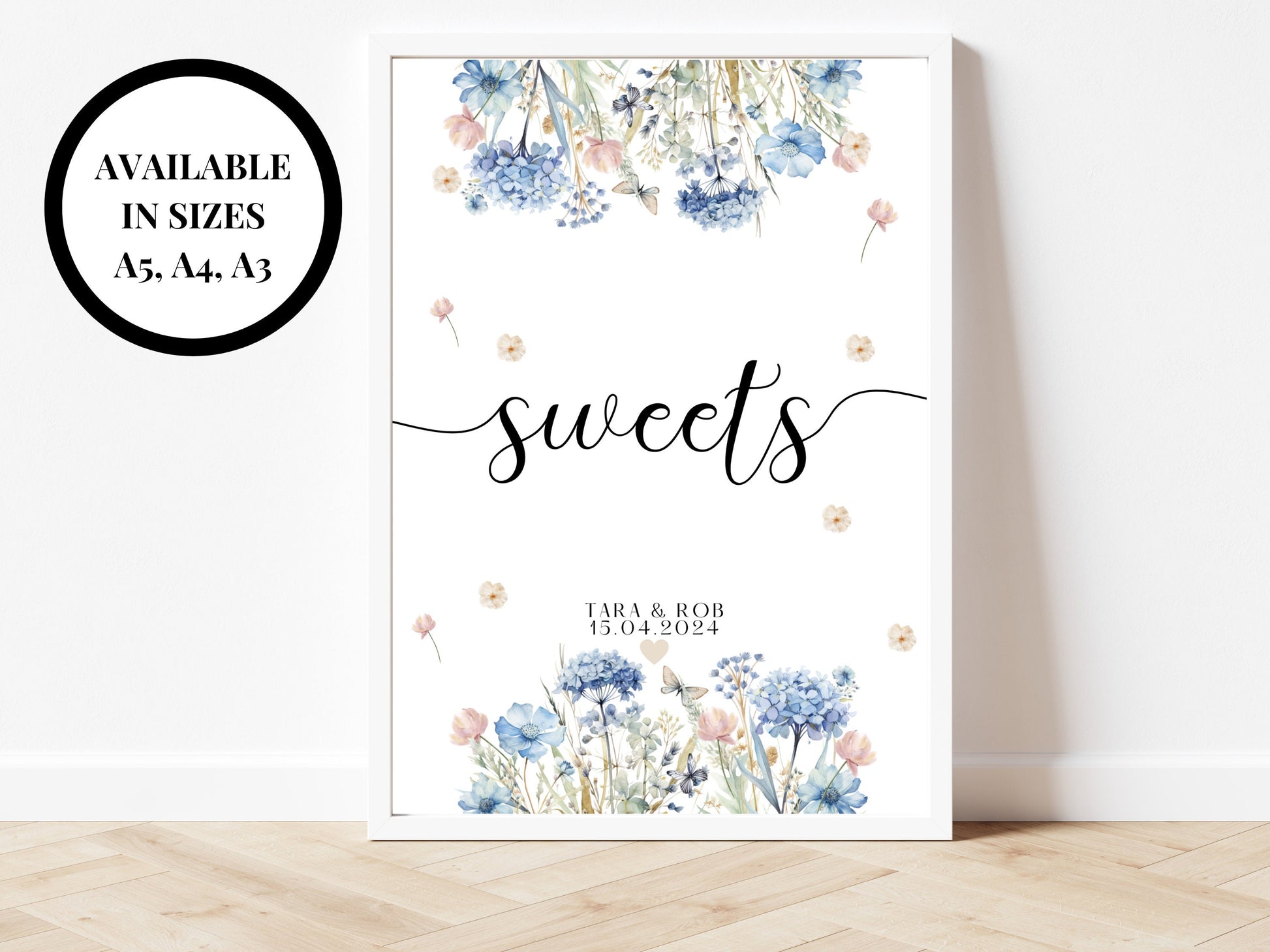 Sweets Sign/ Blue Theme Wedding Reception Cupcakes Cake Poster/ Guest Favours/ Please Take A Favour Floral Pastel Neutral/Pick n Mix Station