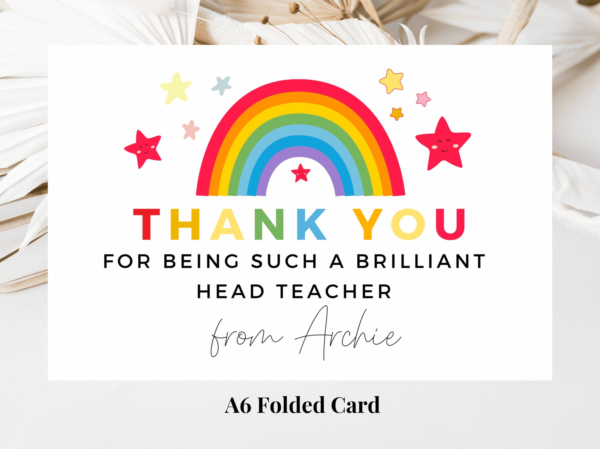 Thank You for Being Such a Brilliant Head Teacher Card/ Custom Pastel Rainbow Star Teacher/ Best Friend/ End Of School Appreciation