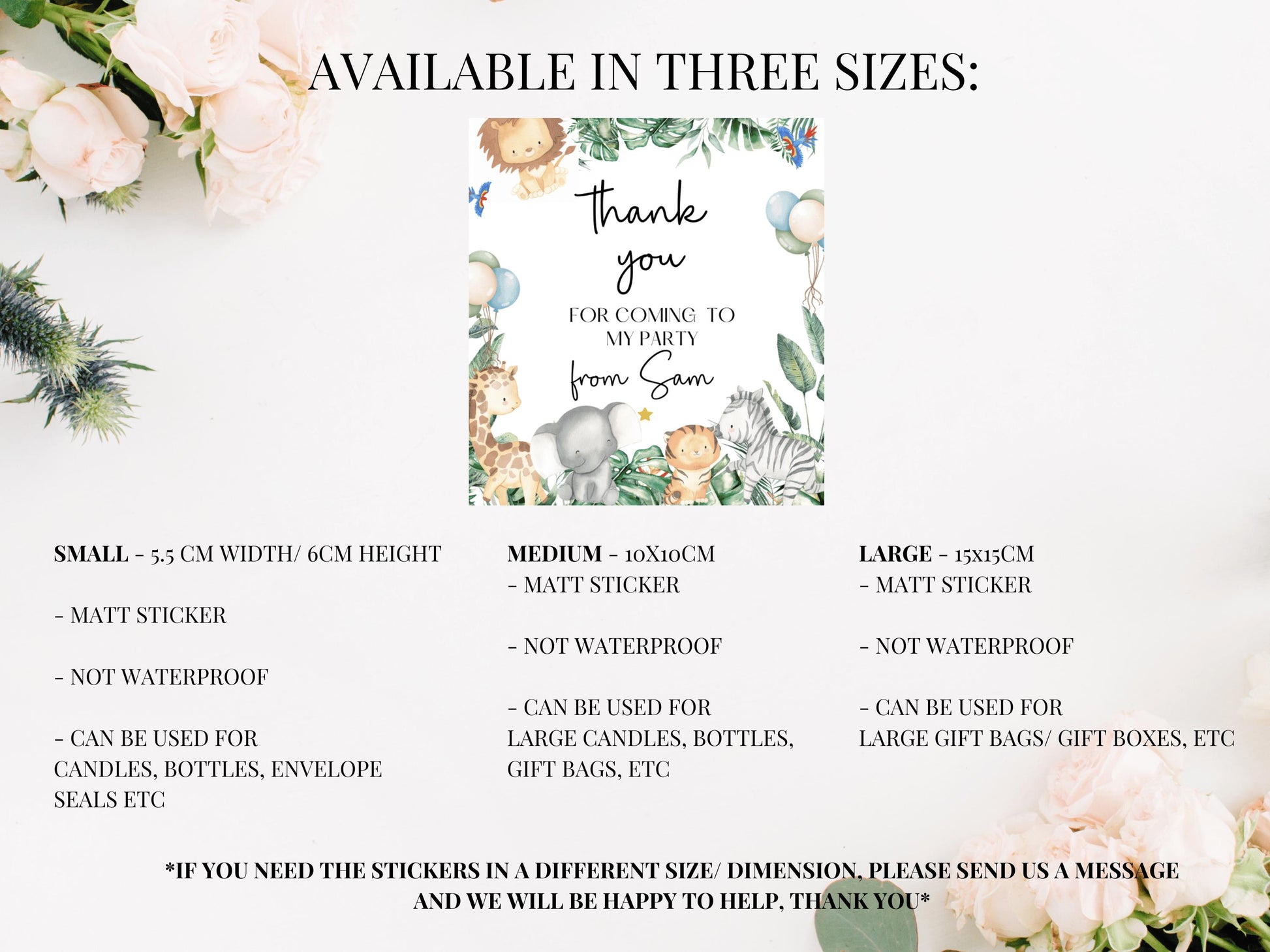 Thank You for Coming to My Birthday Party Gift Box Label/ Personalised Happy Birthday Bag Sticker/ Safari Animals Theme Party Favours Label.