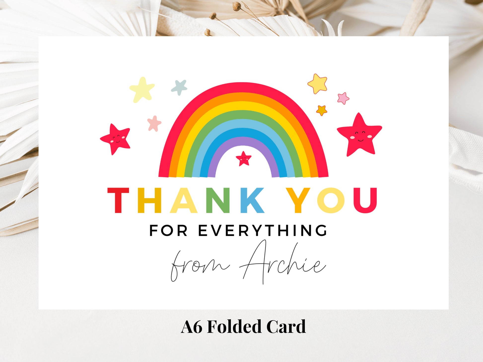 Thank You For Everything Card/ Personalised Pastel Rainbow Star Teacher/ Best Friend/ Mentor/ End Of School Appreciation Gratitude
