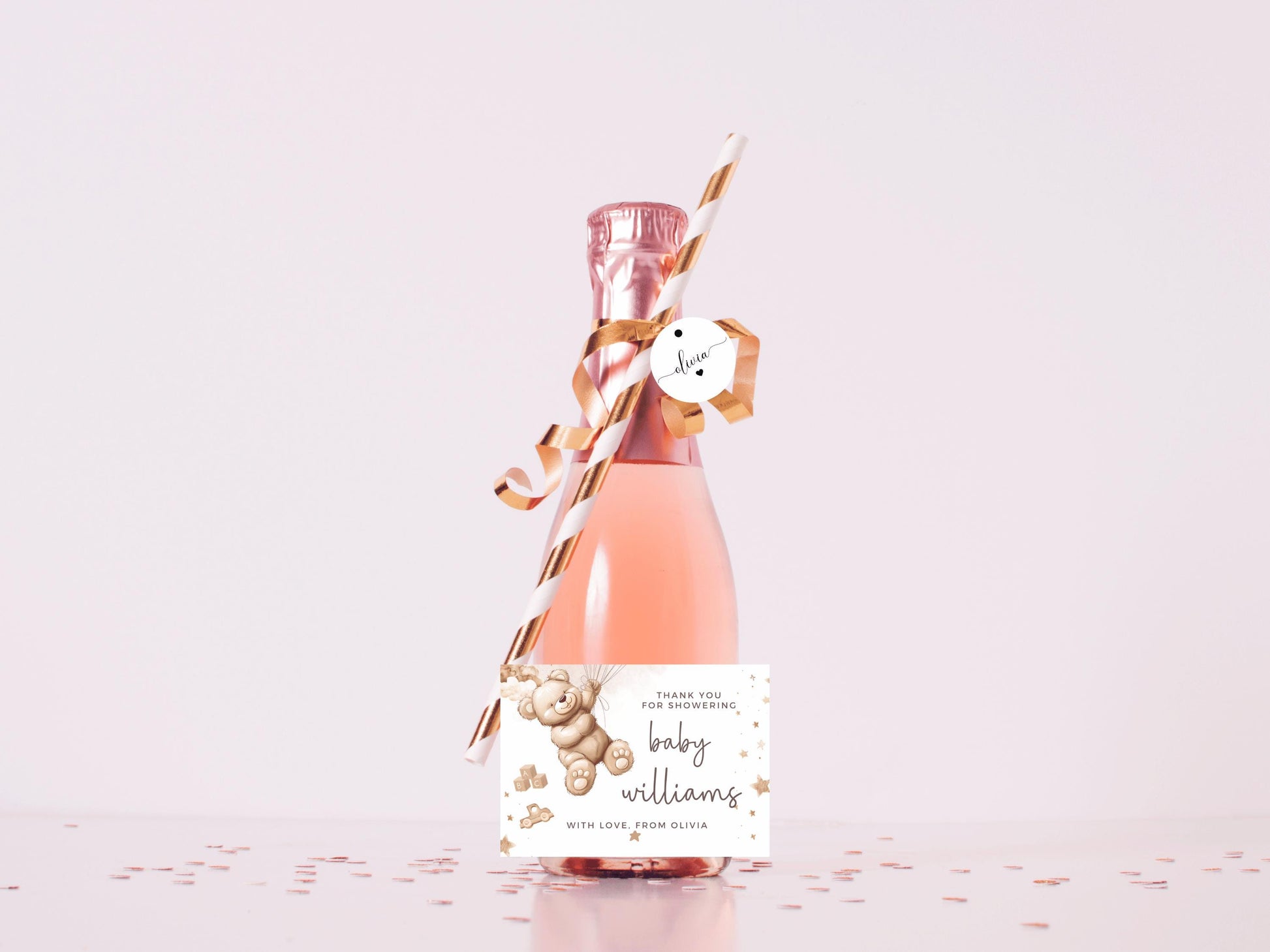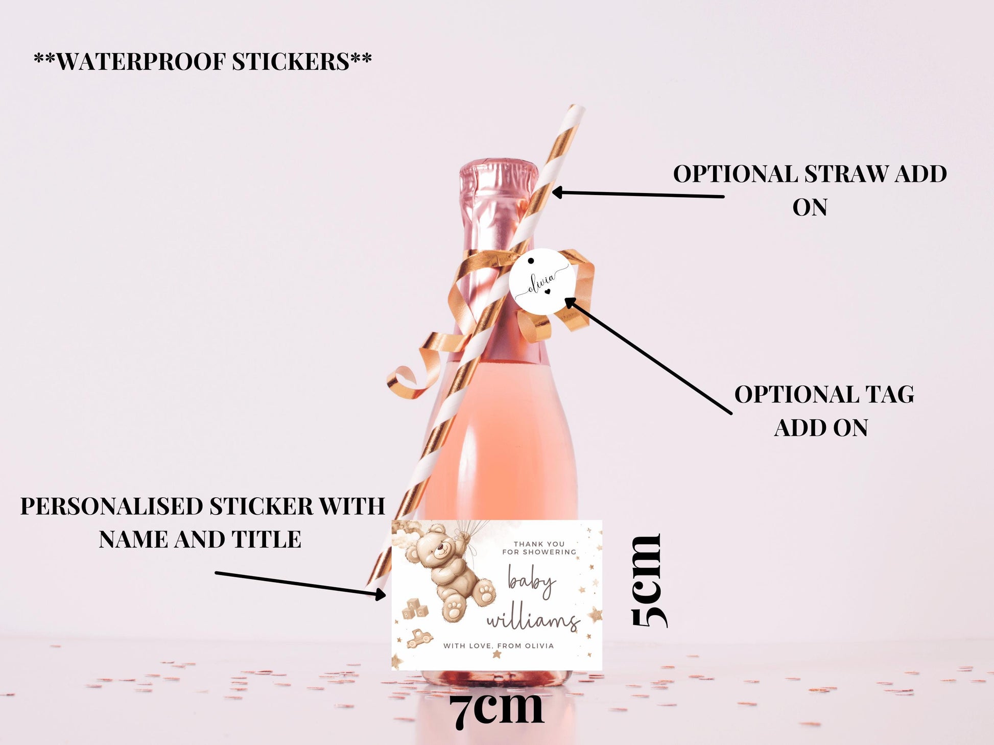 Thank You for Showering Baby With Love Prosecco Bottle Stickers/ Personalised Neutral Brown Teddy Bear Balloons/We Can Bearly Wait Label