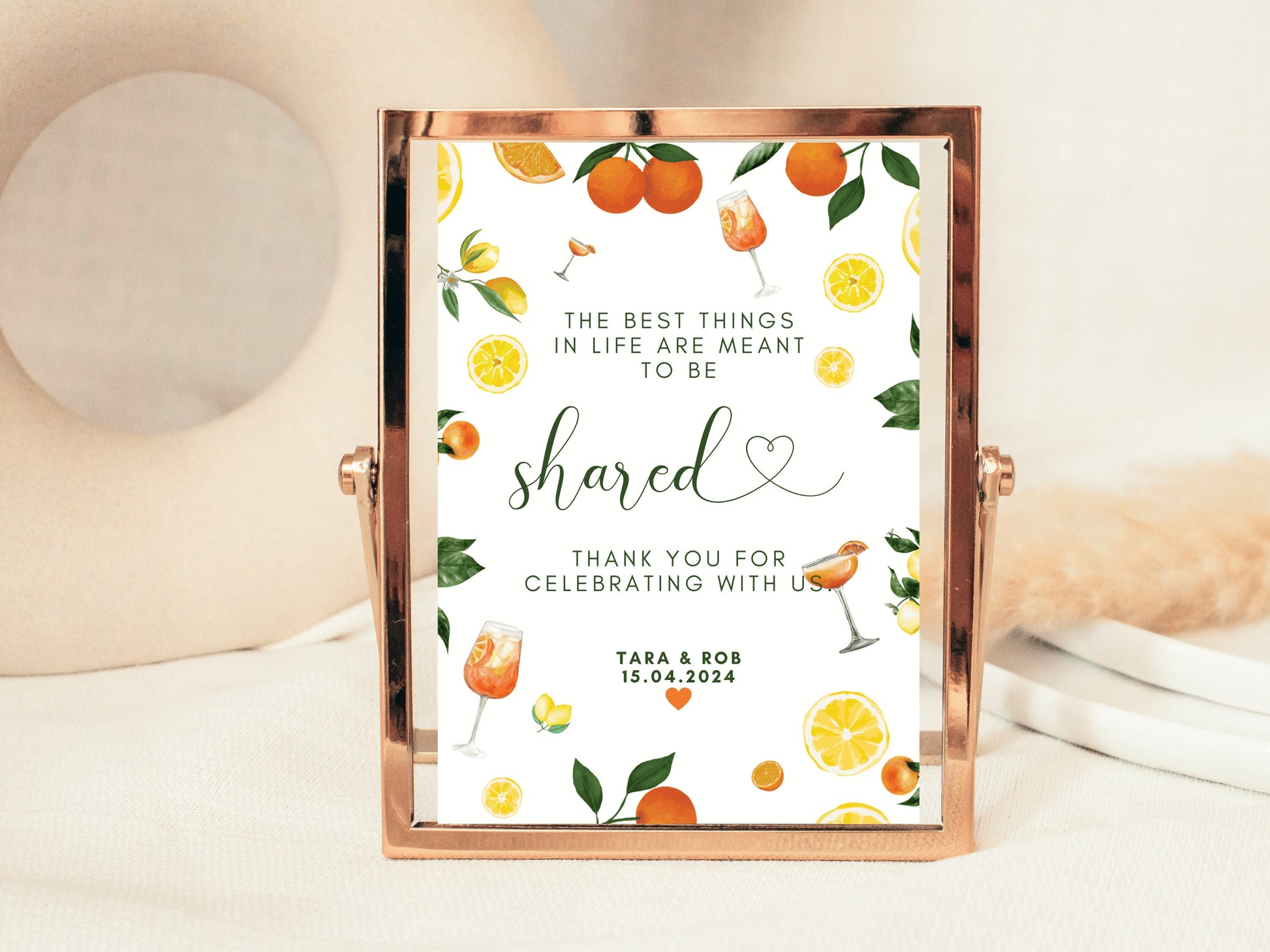 Thank You Sign/ The Best Things in Life Are Meant to Be Shared Thank You for Celebrating With Us/ Mediterranean/ Wedding Reception Seating.