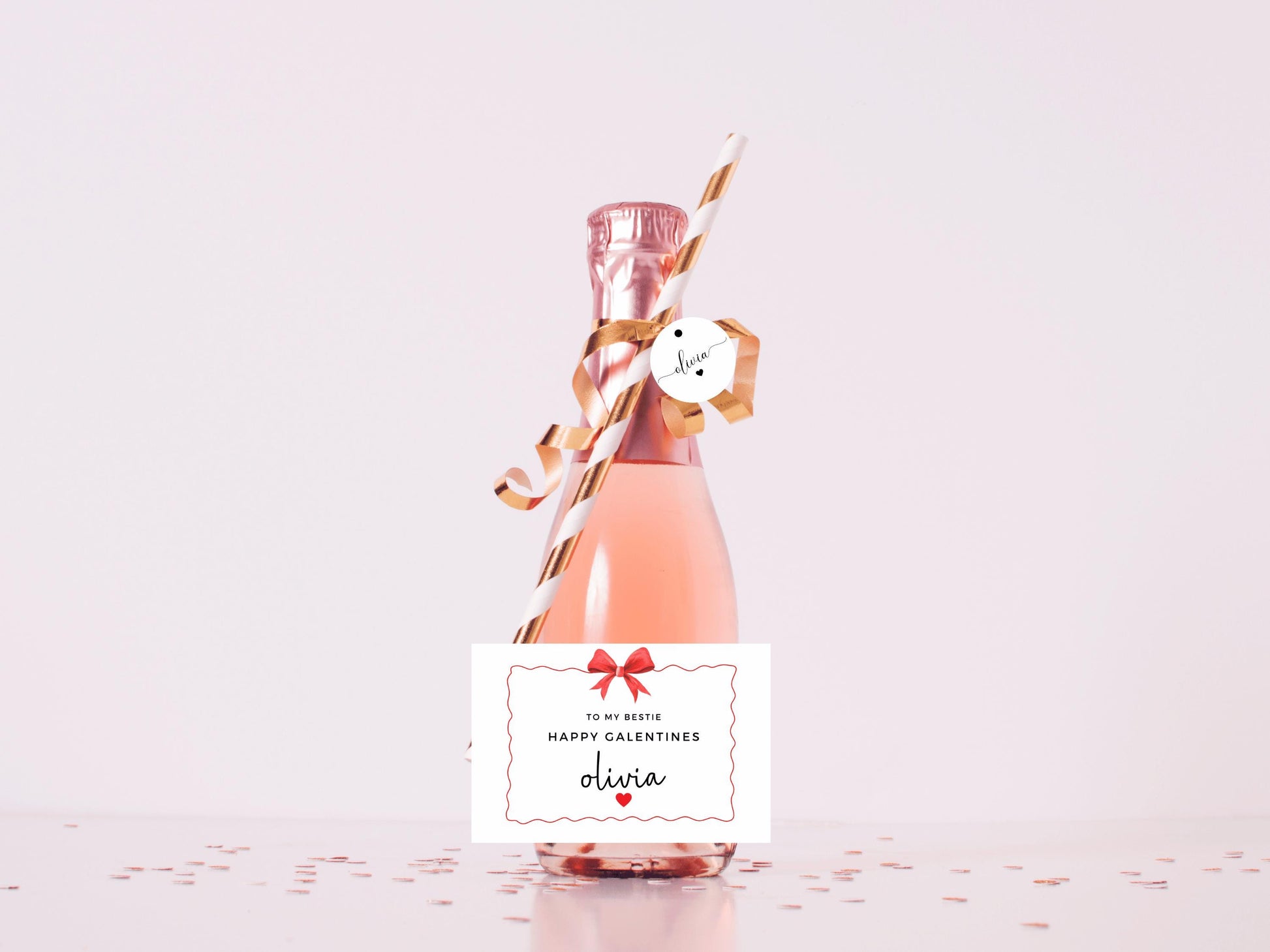 To My Bestie Happy Galentines Bottle Sticker/ Bestie Best Friend Mini Champagne/ Wine/ Prosecco Pink/ Red Heart Bow Label/ Galentines Gift.