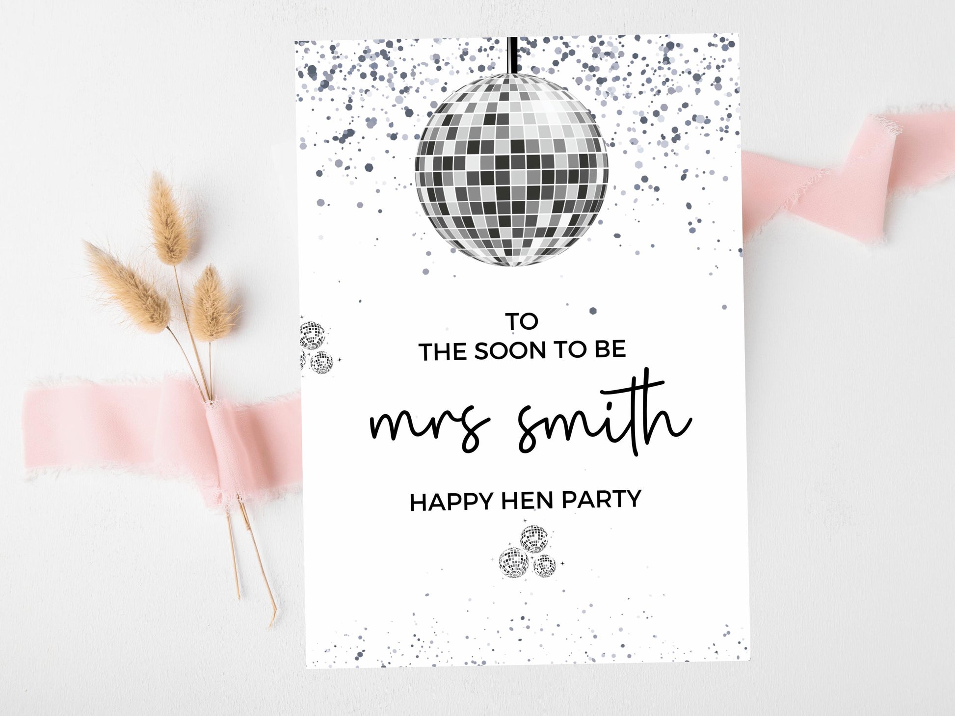 To the Soon to Be Mrs Card/ Personalised Silver Disco Ball Hen Party Weekend Greetings Card/ Team Bride Bridal Shower/ Last Disco Card