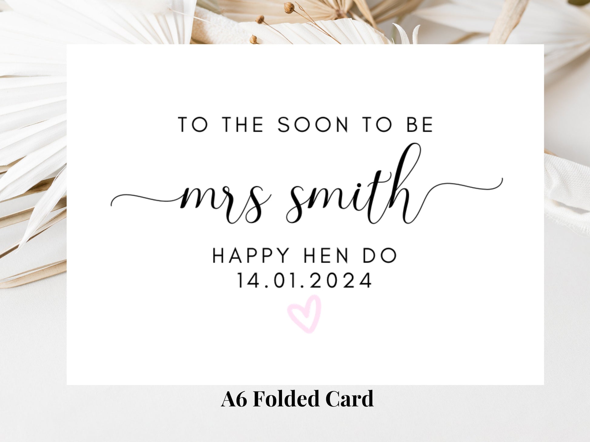 To the Soon to Be Mrs Happy Hen Party Card/ Personalised Bride to Be Bridal Shower/ Bachelorette Boho Pink Heart Hen Party Weekend Card.