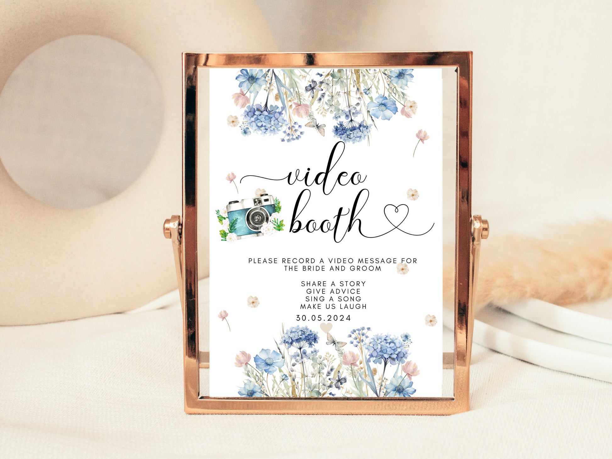Video Booth Sign/ Personalised Blue Theme Wedding Reception Please Record a Video Message for the Bride and Groom Videography Poster
