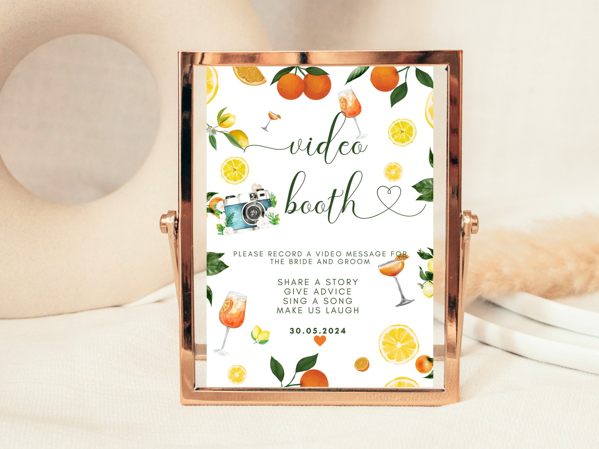 Video Booth Sign/ Spring Summer Lemons Oranges Mediterranean/ Italian Style Wedding Reception/ Record a Video Message for the Bride and Groom.