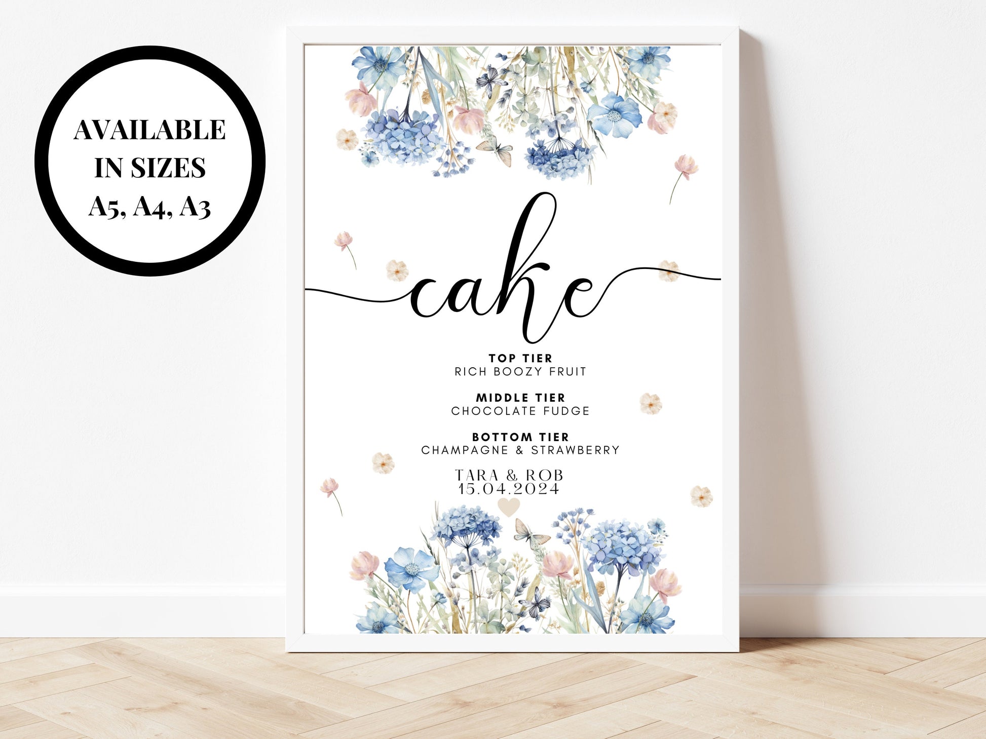 Wedding Cake Sign/ Blue Theme Wedding Reception Cake Poster/ Guest Favours/ Please Take A Favour Floral Pastel Neutral