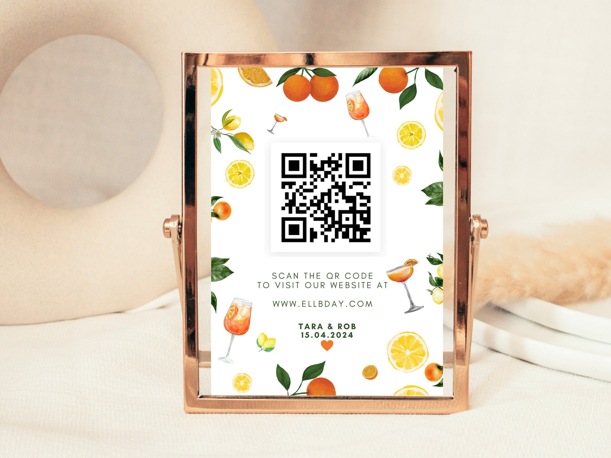 Wedding QR Code Sign/ Citrus Spritz Spring Summer Lemons Oranges Mediterranean Wedding Website QR Sign Link/ Italian Style Celebration