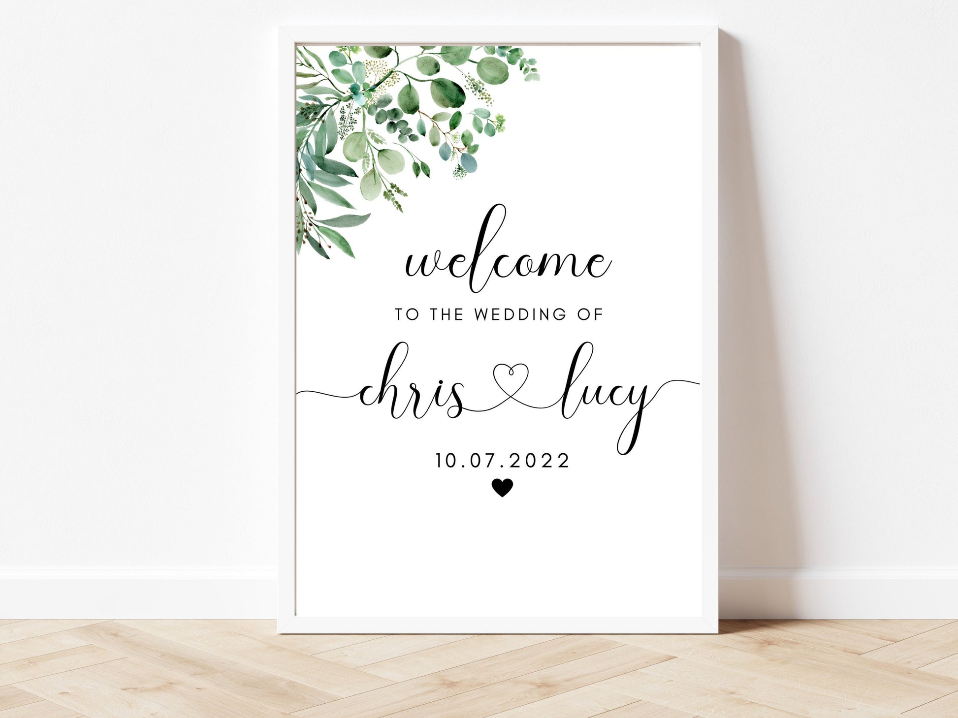 Wedding Welcome Sign/ Personalised Greenery Eucalyptus Reception Print/ Modern Simple Minimalist Guest Poster/ Wedding Party Decor