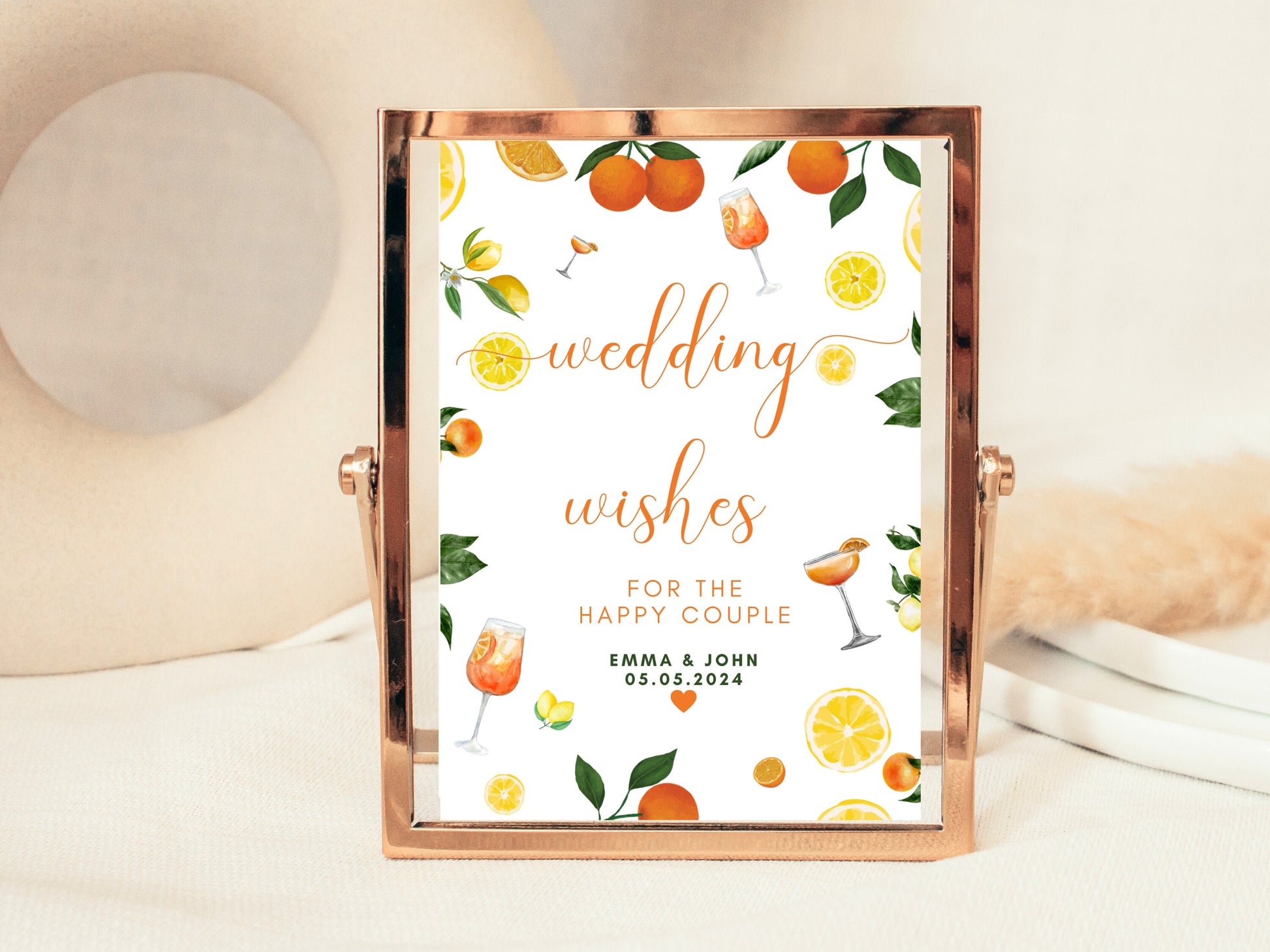 Wedding Wishes for the Happy Couple Sign/ Citrus Spritz Spring Summer Lemons Oranges Mediterranean/ Italian Style Wedding Guest Games Poster.