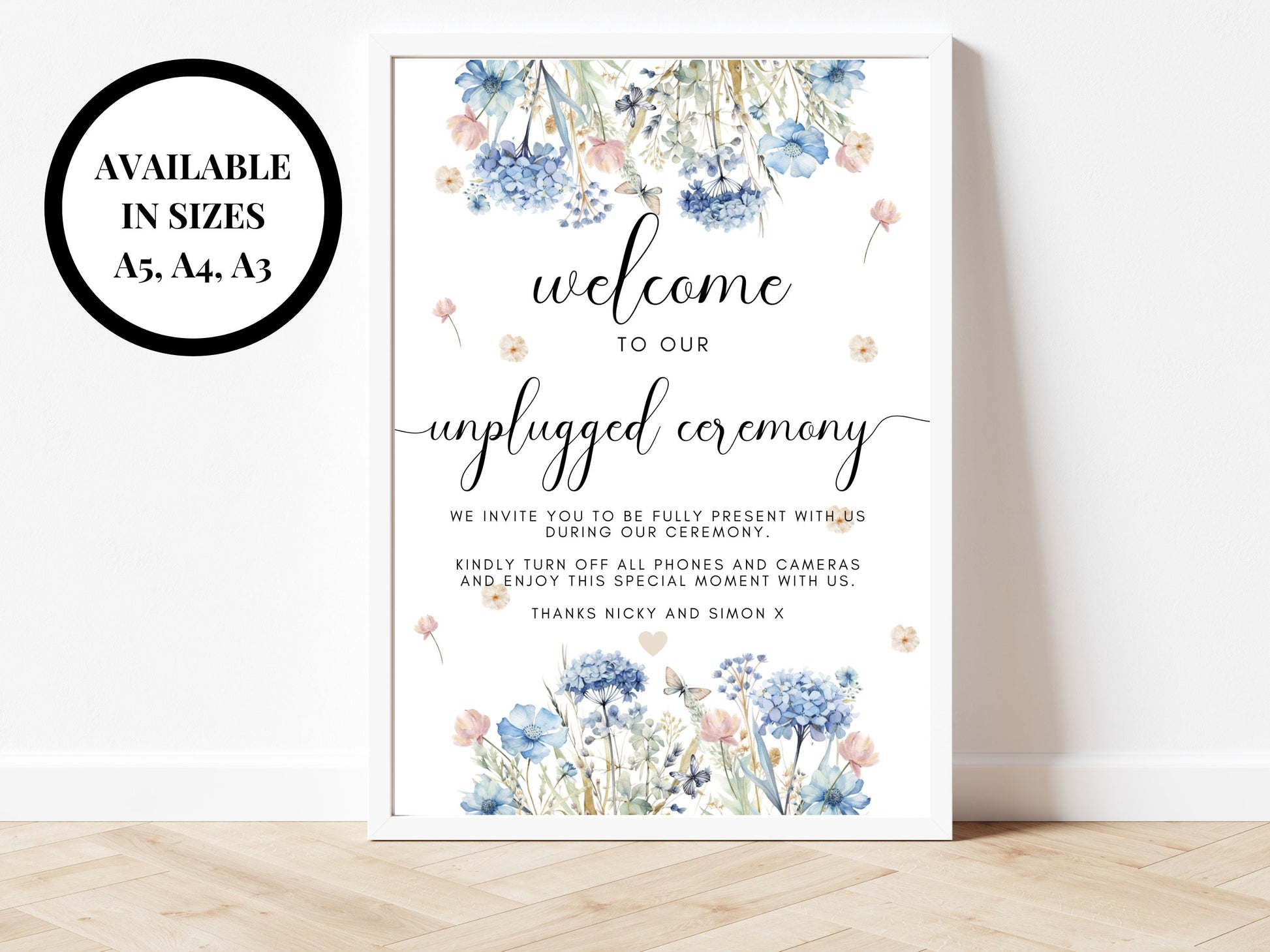 Welcome to Our Unplugged Ceremony Sign/ Blue Theme No Mobile Phones Wedding Guest Signage/ No Social Media Floral Pastel Neutral Poster