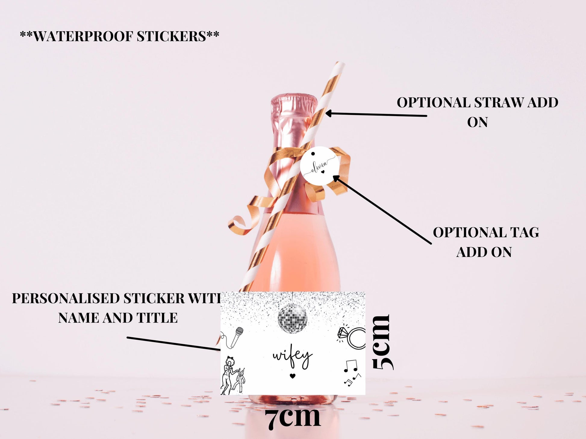 Wifey Mini Prosecco Bottle Label/ Bride to Be Silver Disco Ball Hen Party/ Bride Squad/ Bridal Shower Gift Decor/ Wine Champagne Sticker